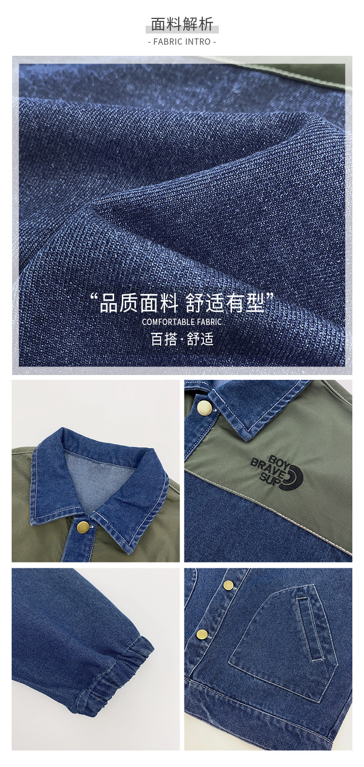 소년 2025 봄, 가을 새로운 Haima의 데님 스플 라이스 유행 재킷 탑 어린이 한국 스타일 재킷 아동 의류