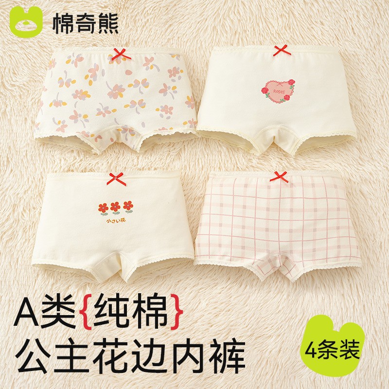 여자 속옷 A 등급 면화 어린이 복서 중형 및 대형 어린이 복서 엉덩이가없는 아기 속옷 반바지스토어 가기