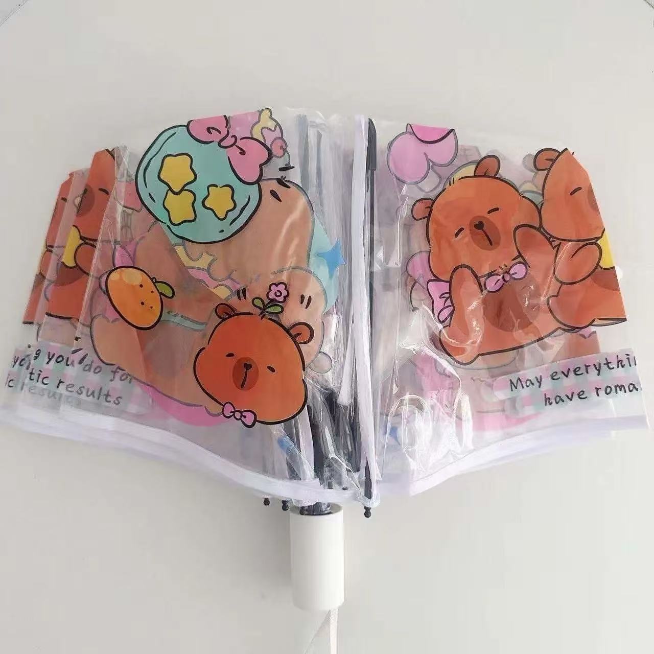작고 깔끔한 자동 만화 70% off 투명 우산 커플 학생용 창의적인 양산 겸용 우산 인기 70% off 접이식 투명 우산