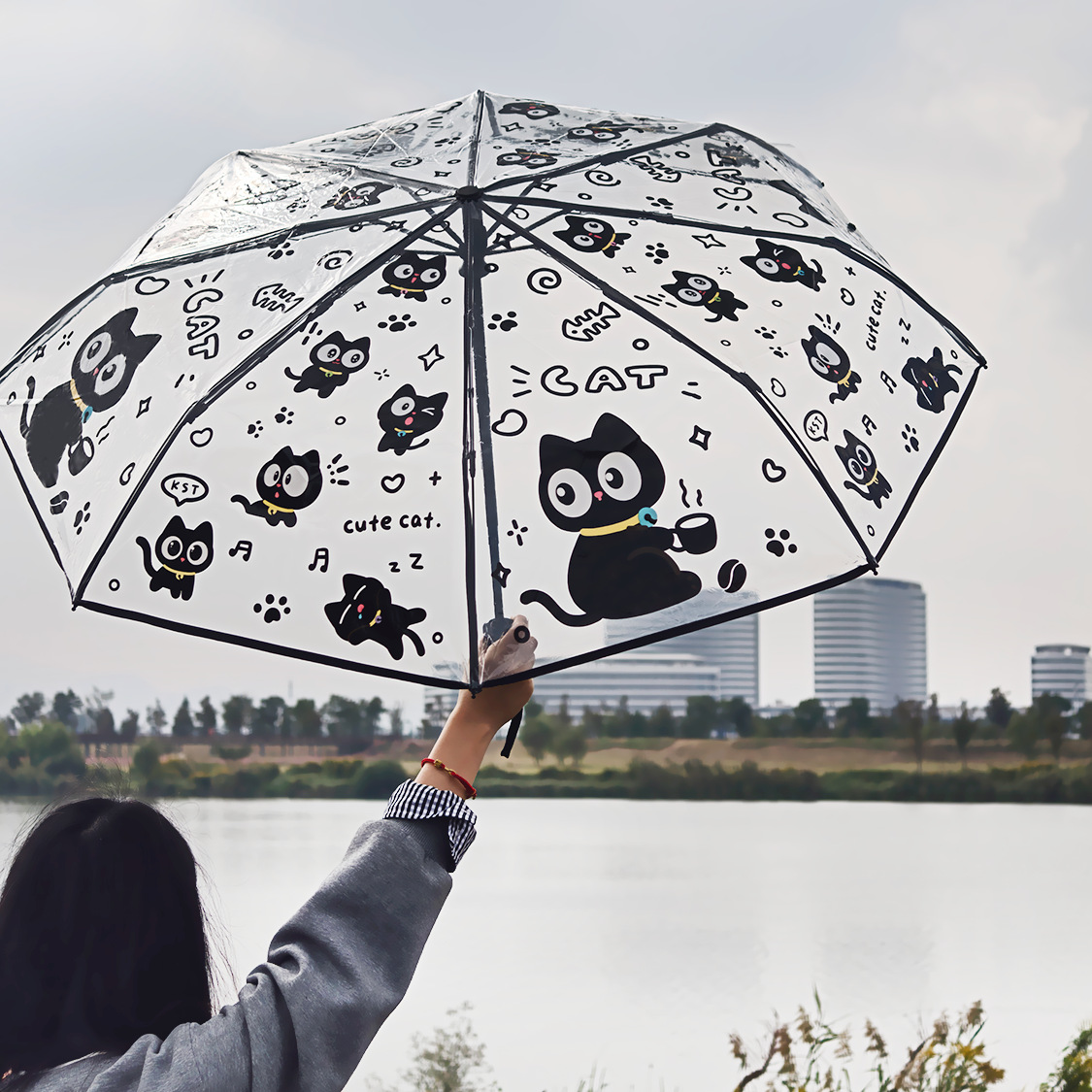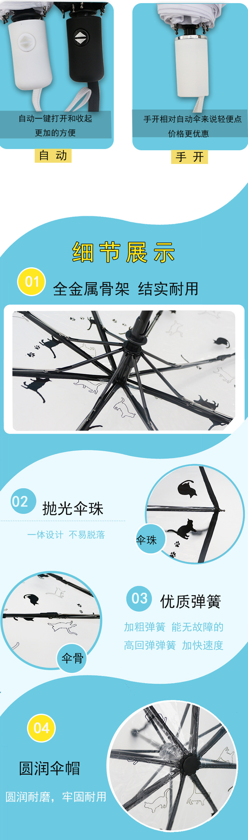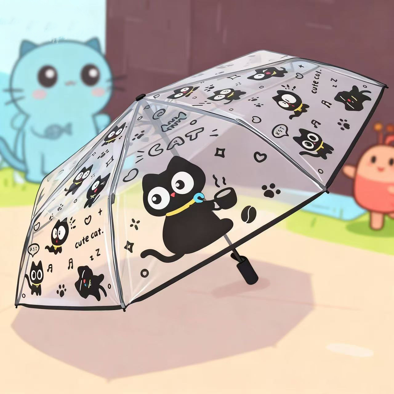 작고 깔끔한 자동 만화 70% off 투명 우산 커플 학생용 창의적인 양산 겸용 우산 인기 70% off 접이식 투명 우산스토어 가기