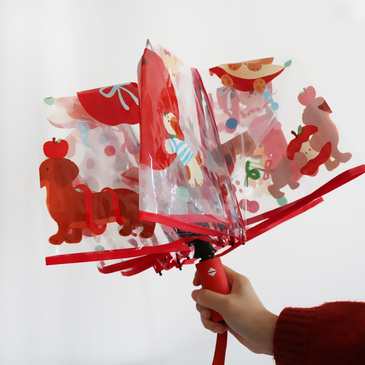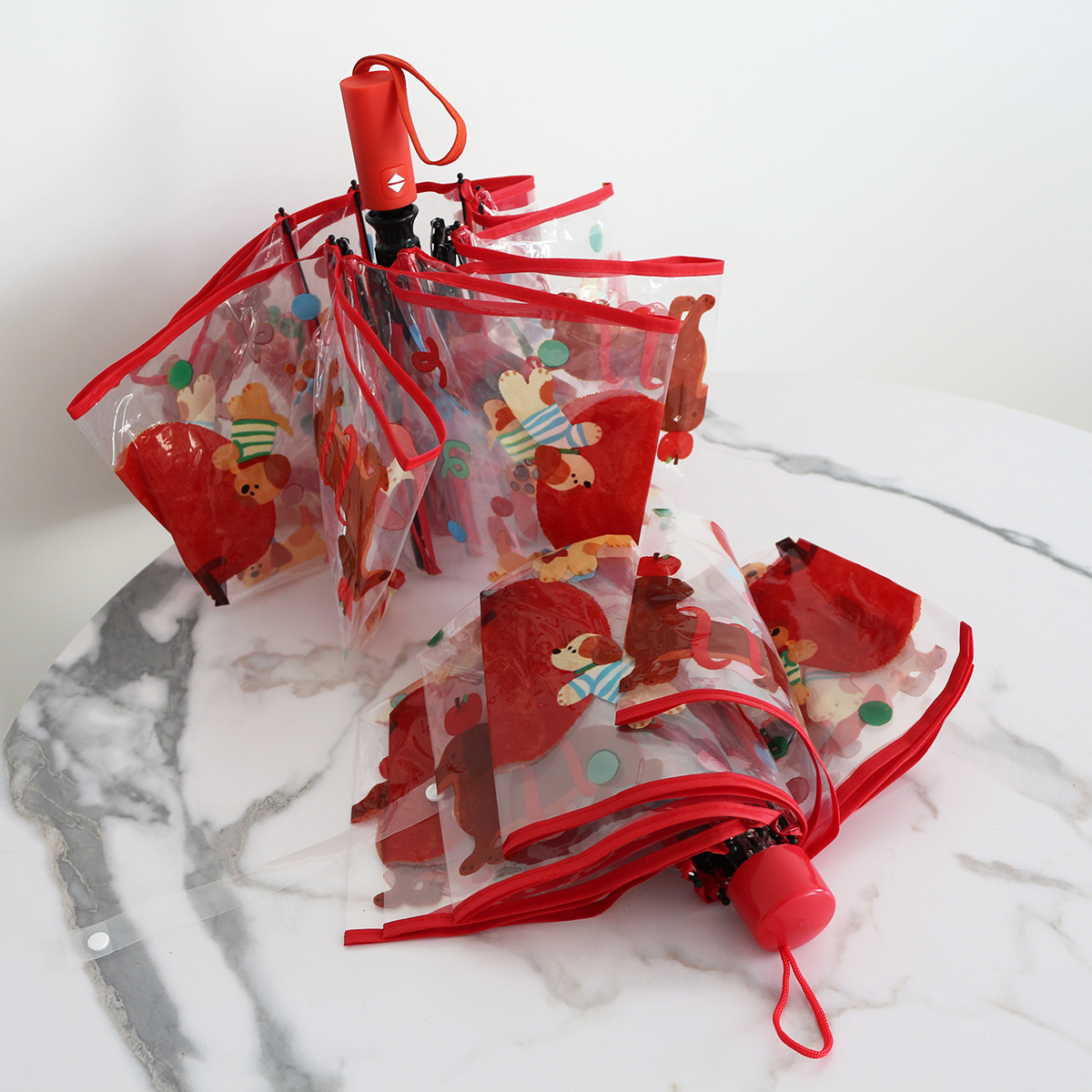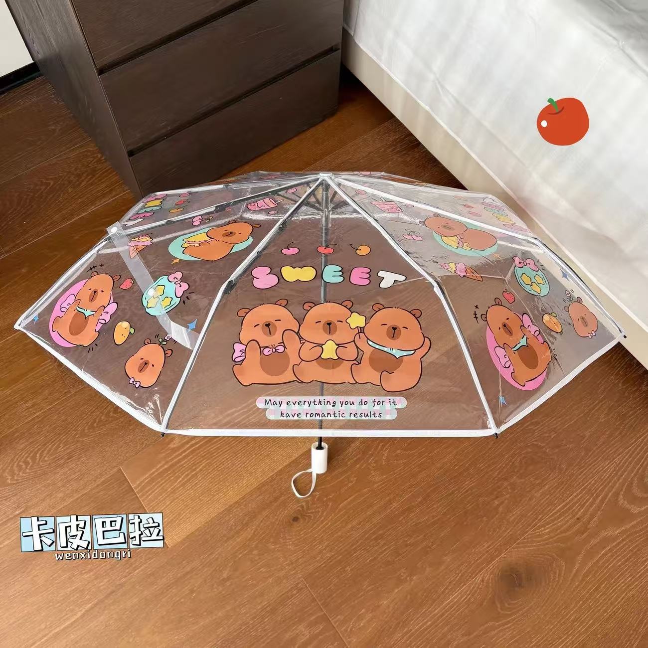 작고 깔끔한 자동 만화 70% off 투명 우산 커플 학생용 창의적인 양산 겸용 우산 인기 70% off 접이식 투명 우산스토어 가기