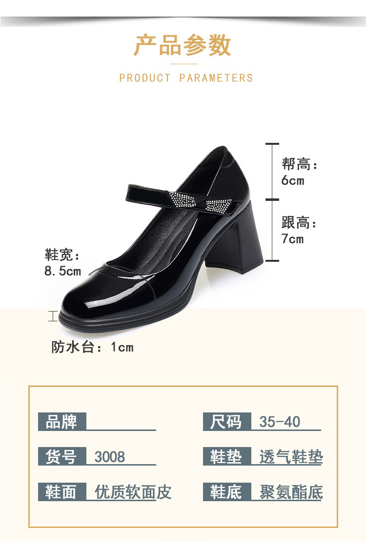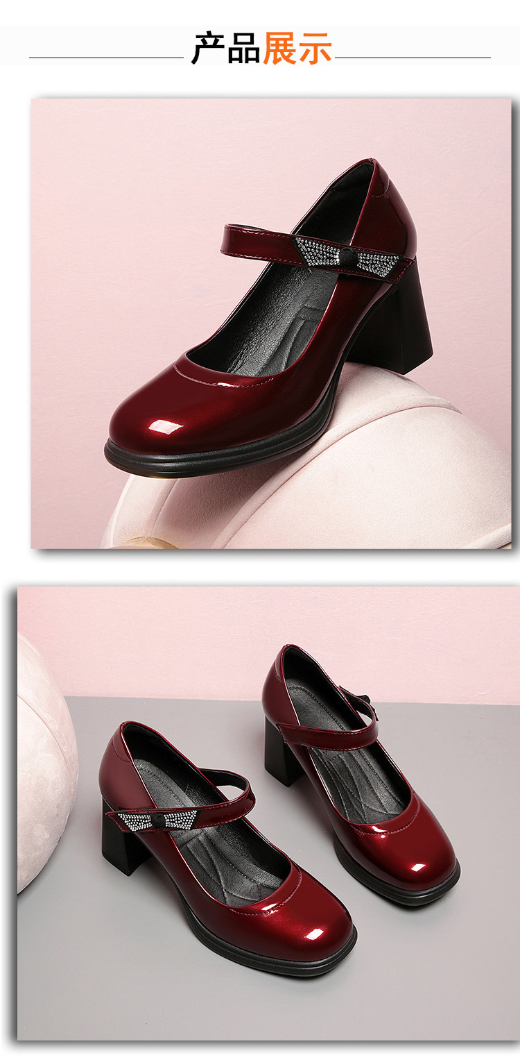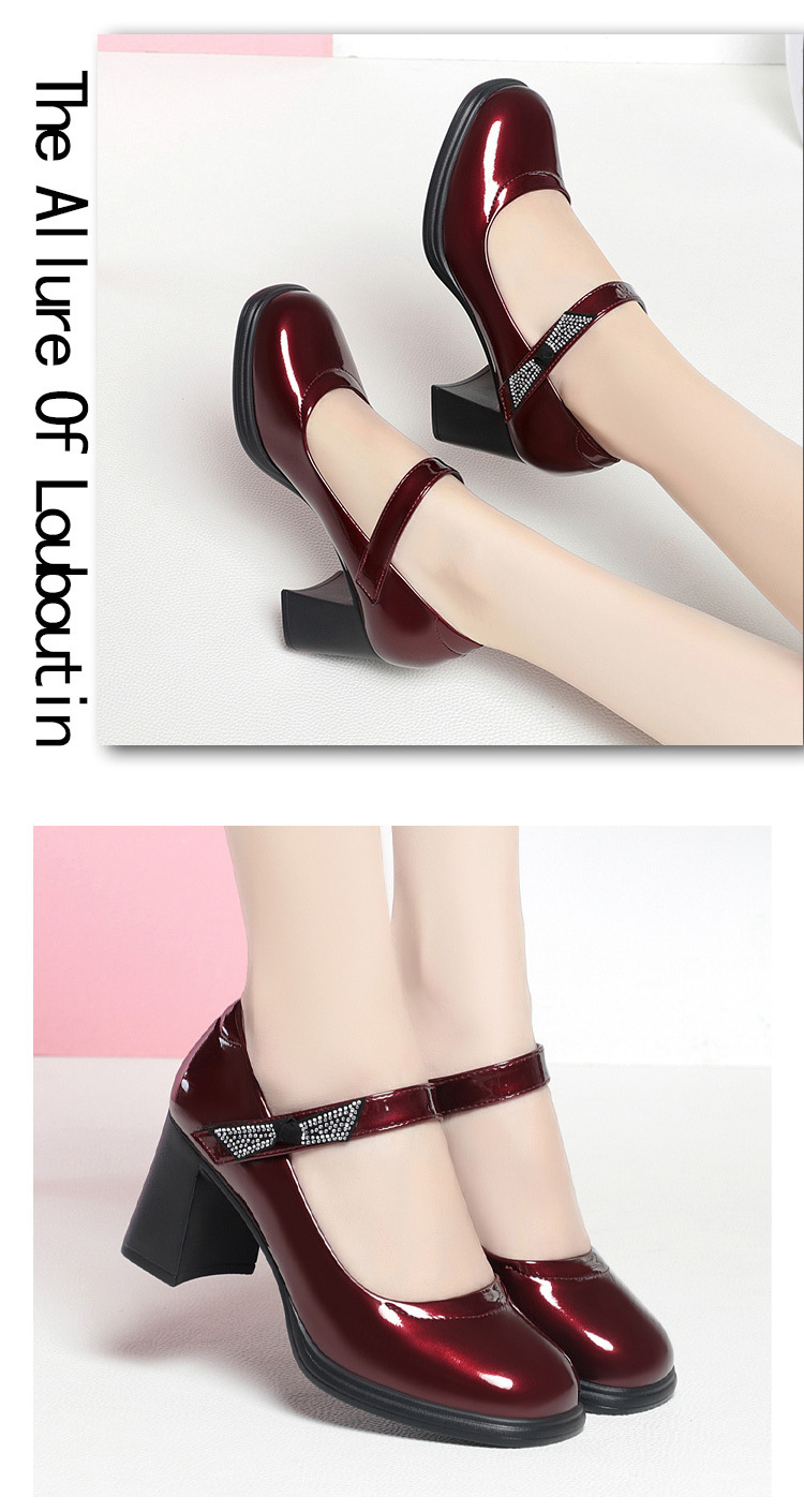 하이힐, 두꺼운 굽, 광택 가죽, 프렌치 스타일 메리제인 슈즈, 스퀘어 토, 예식용 구두, 치파오 슈즈, 원스트랩 슈즈, 봄 여름 가죽 구두