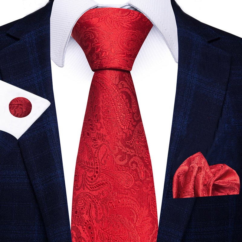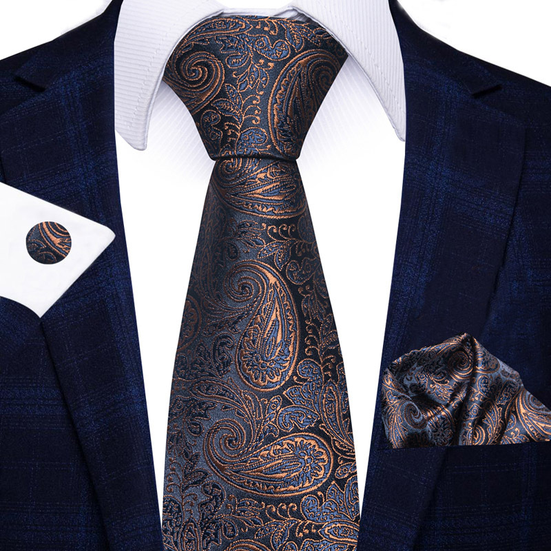 공장 재고 직공급 폴리 에스테르 8cm 패션 페이즐리 남성 넥타이 스퀘어 커프 3 종 세트스토어 가기