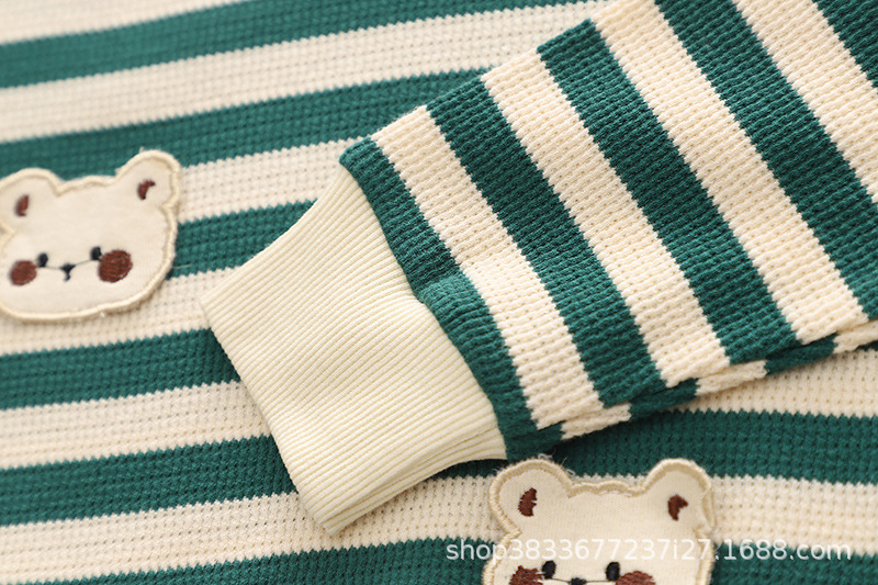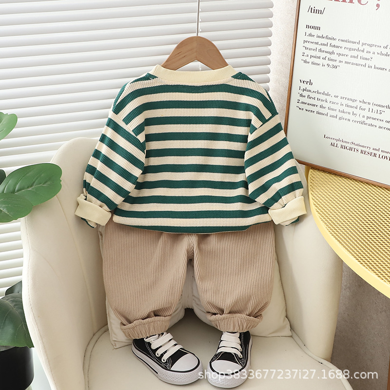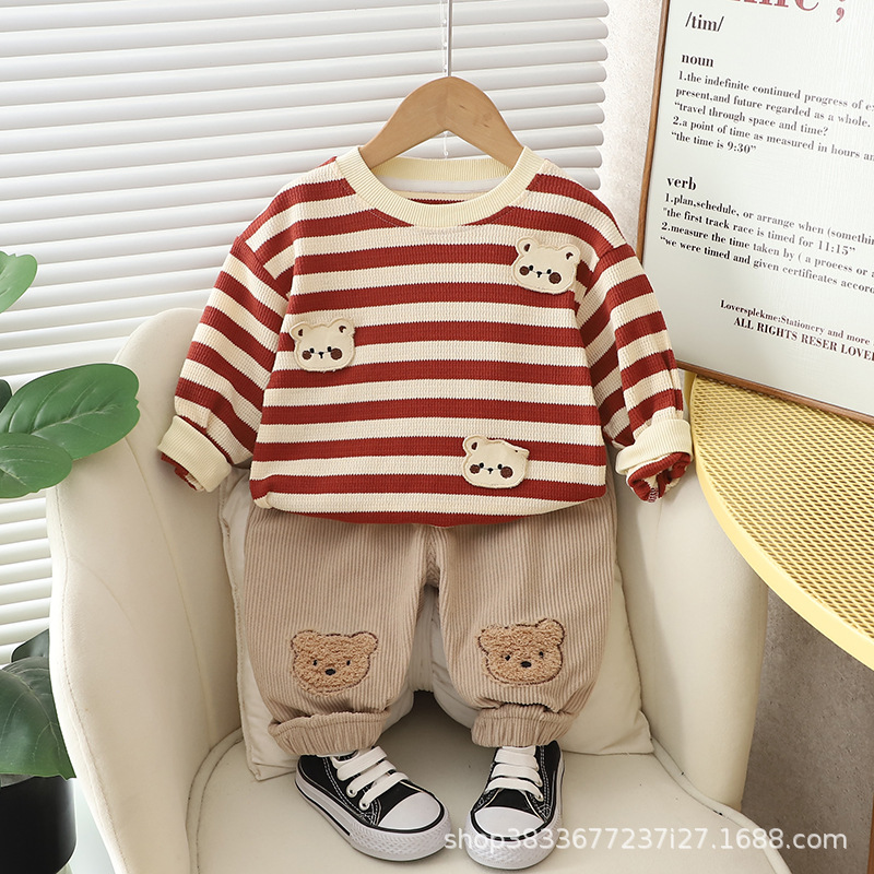 소년 세트 가을 2023 새로운 중소 어린이 줄무늬 곰 긴 소매 투피스 어린이 스웨터 잘 생긴 조수 도매스토어 가기