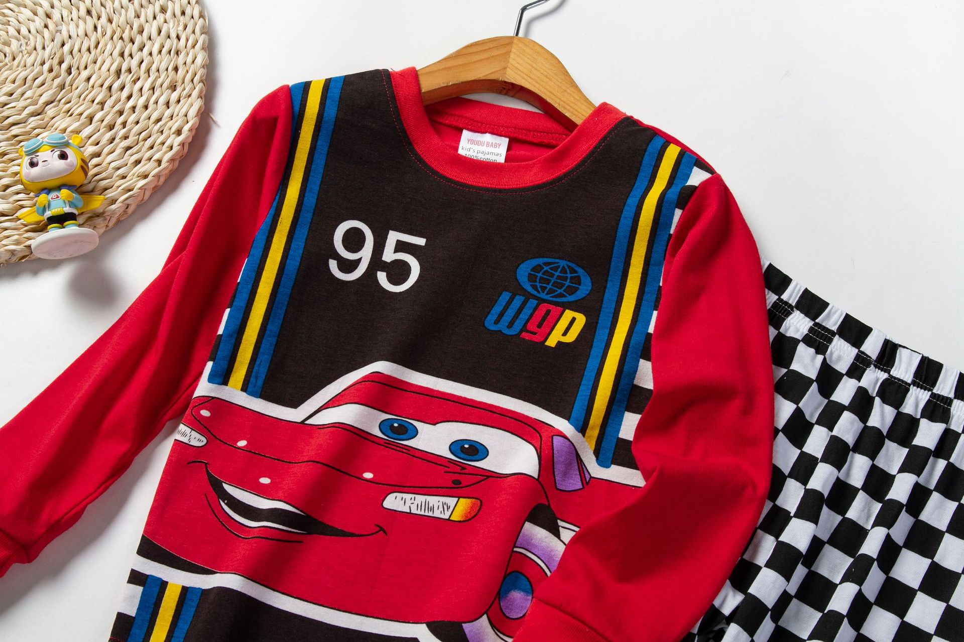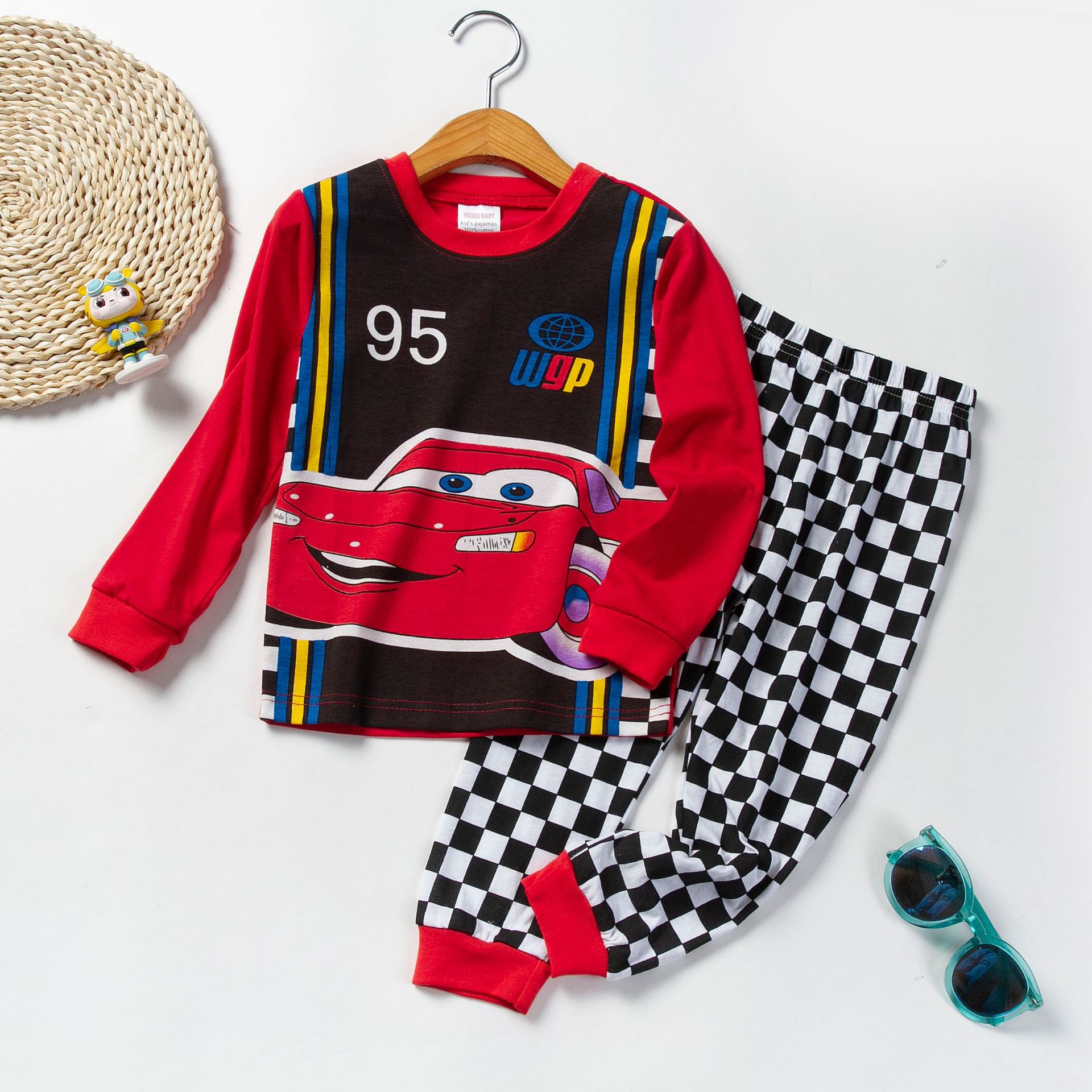 새로운 긴 소매 아동복 소년 아기 만화 격자 무늬 자동차 가정 옷 세트 잠옷 가정 옷스토어 가기