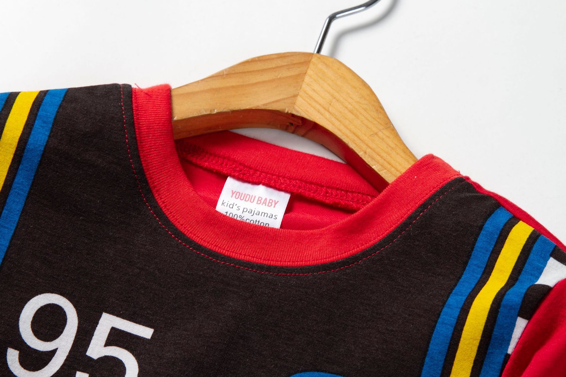 새로운 긴 소매 아동복 소년 아기 만화 격자 무늬 자동차 가정 옷 세트 잠옷 가정 옷