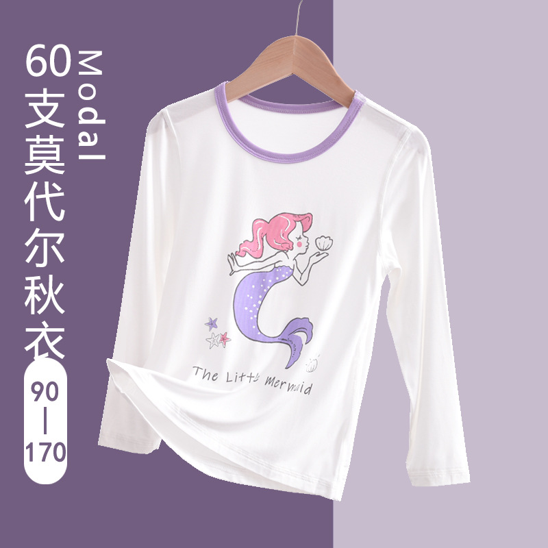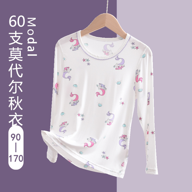 60 모달 어린이 긴팔 재킷 가을과 겨울 얇은 여아 대형 어린이 속옷 가정복 긴 잠옷