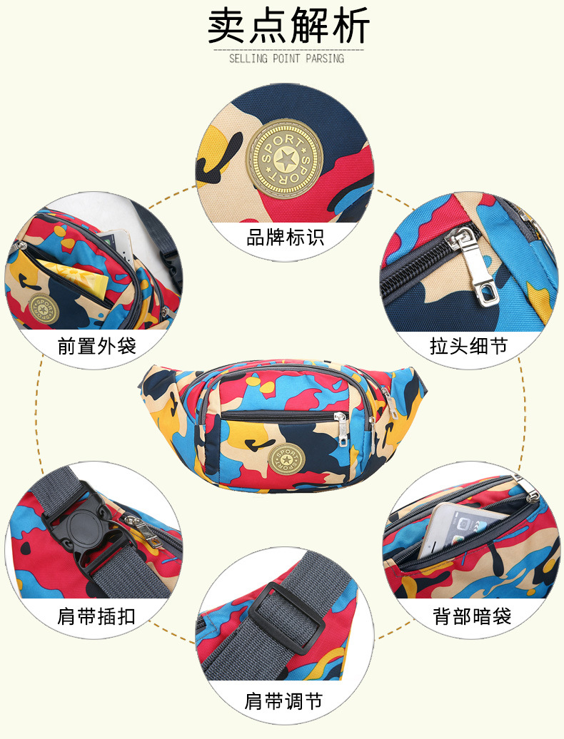 2023 새로운 위장 남녀 가슴 가방 패션 캐주얼 러닝 허리 가방 비즈니스 금전 등록기 동전 지갑 도매스토어 가기