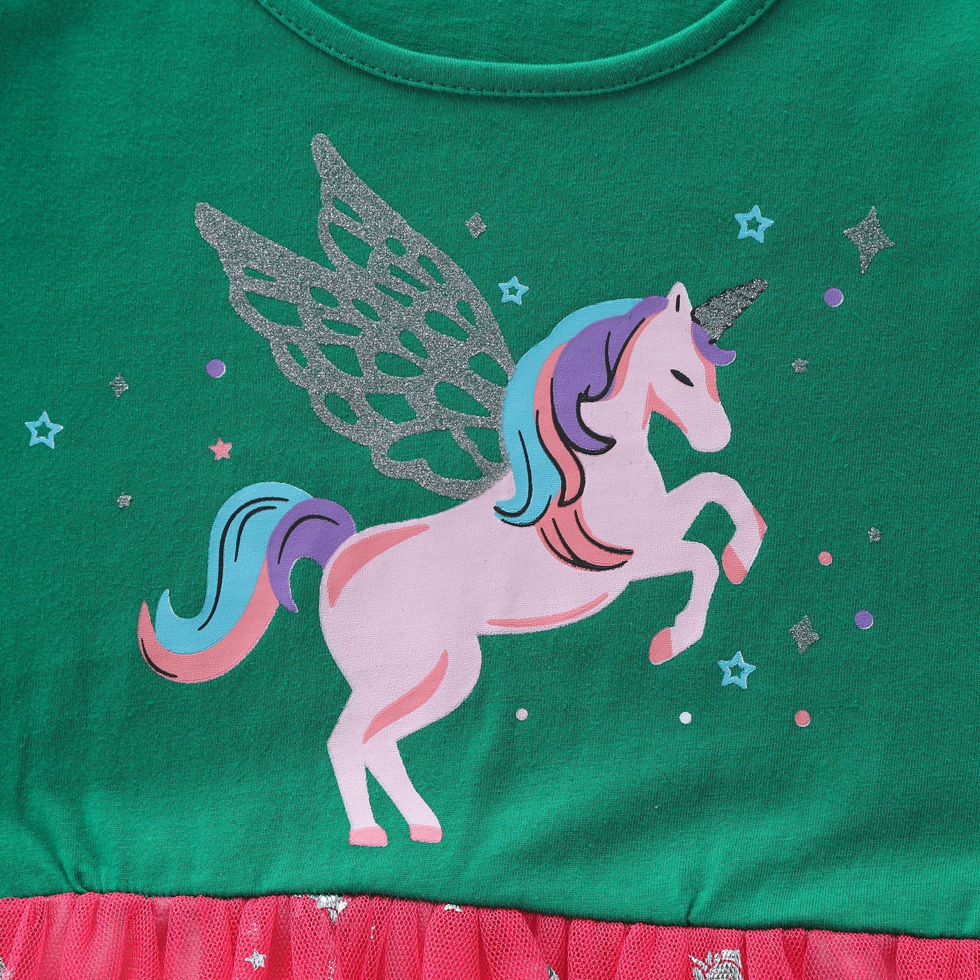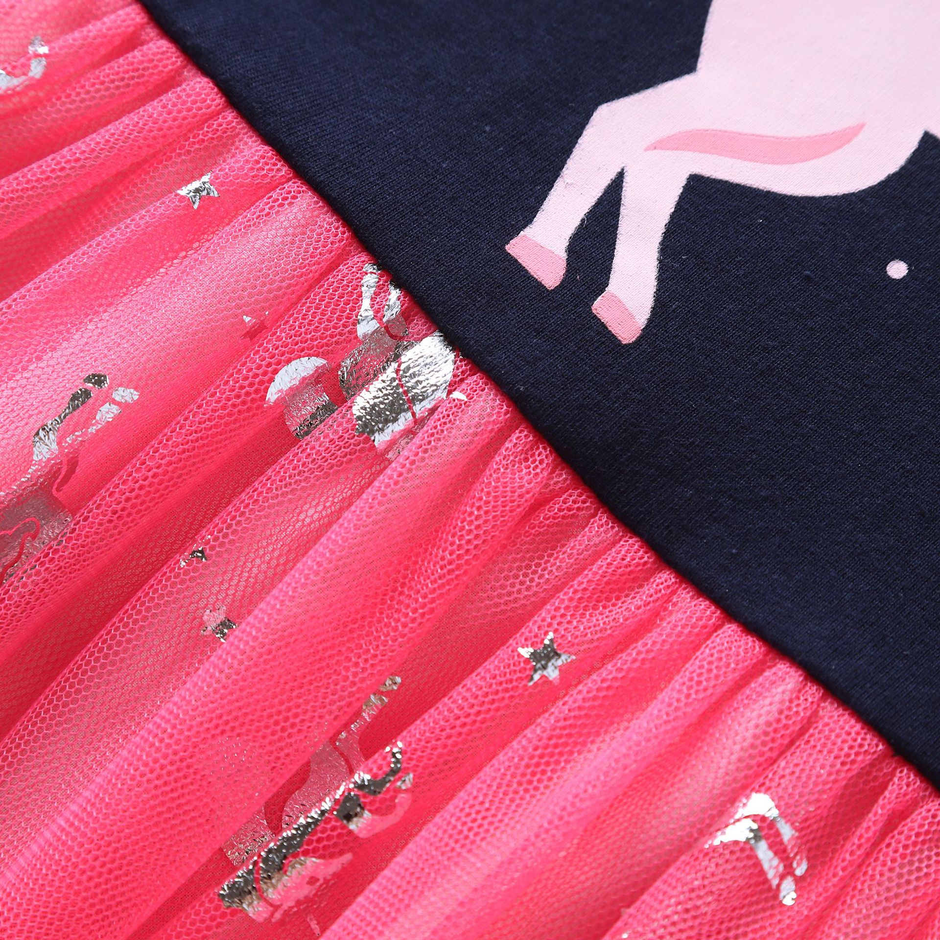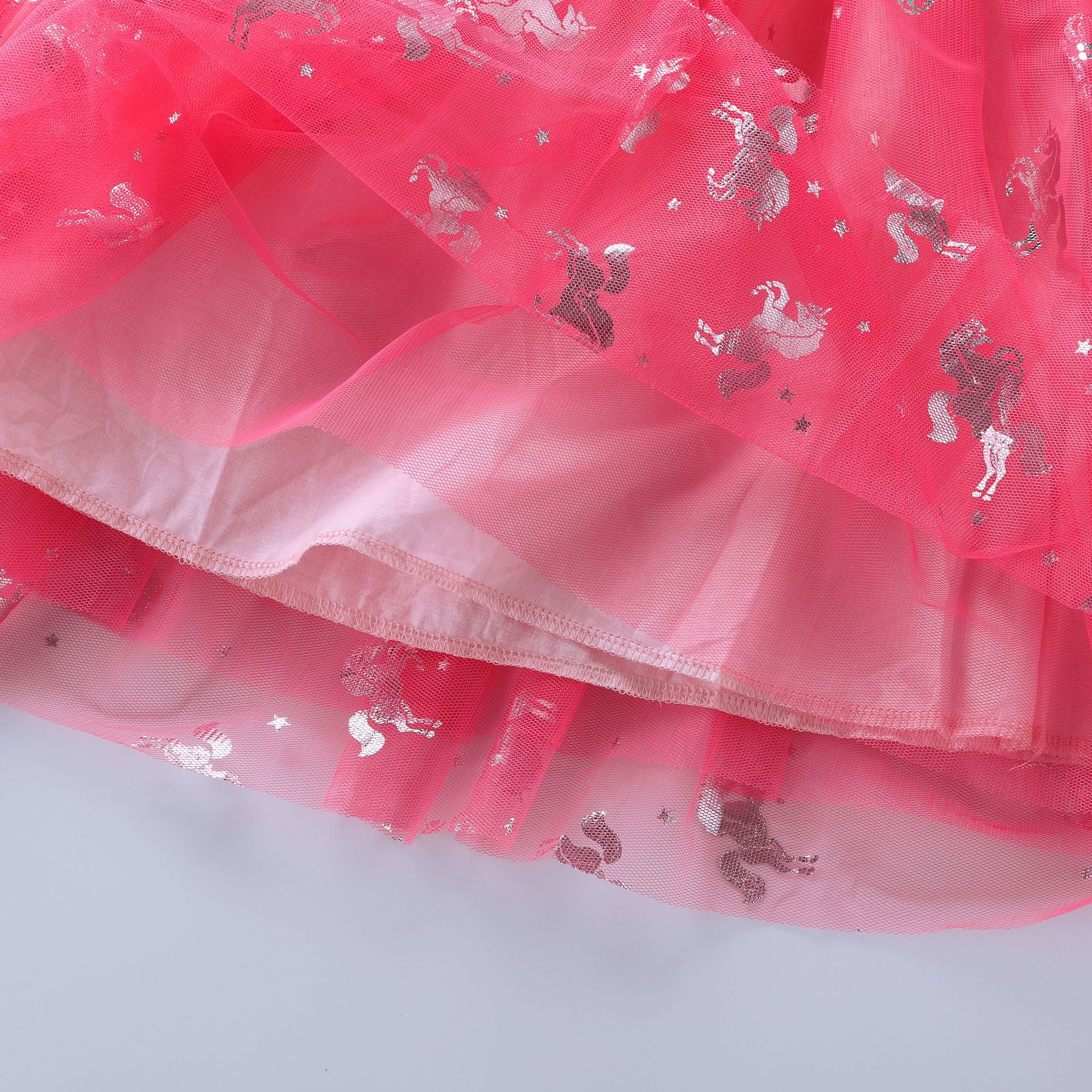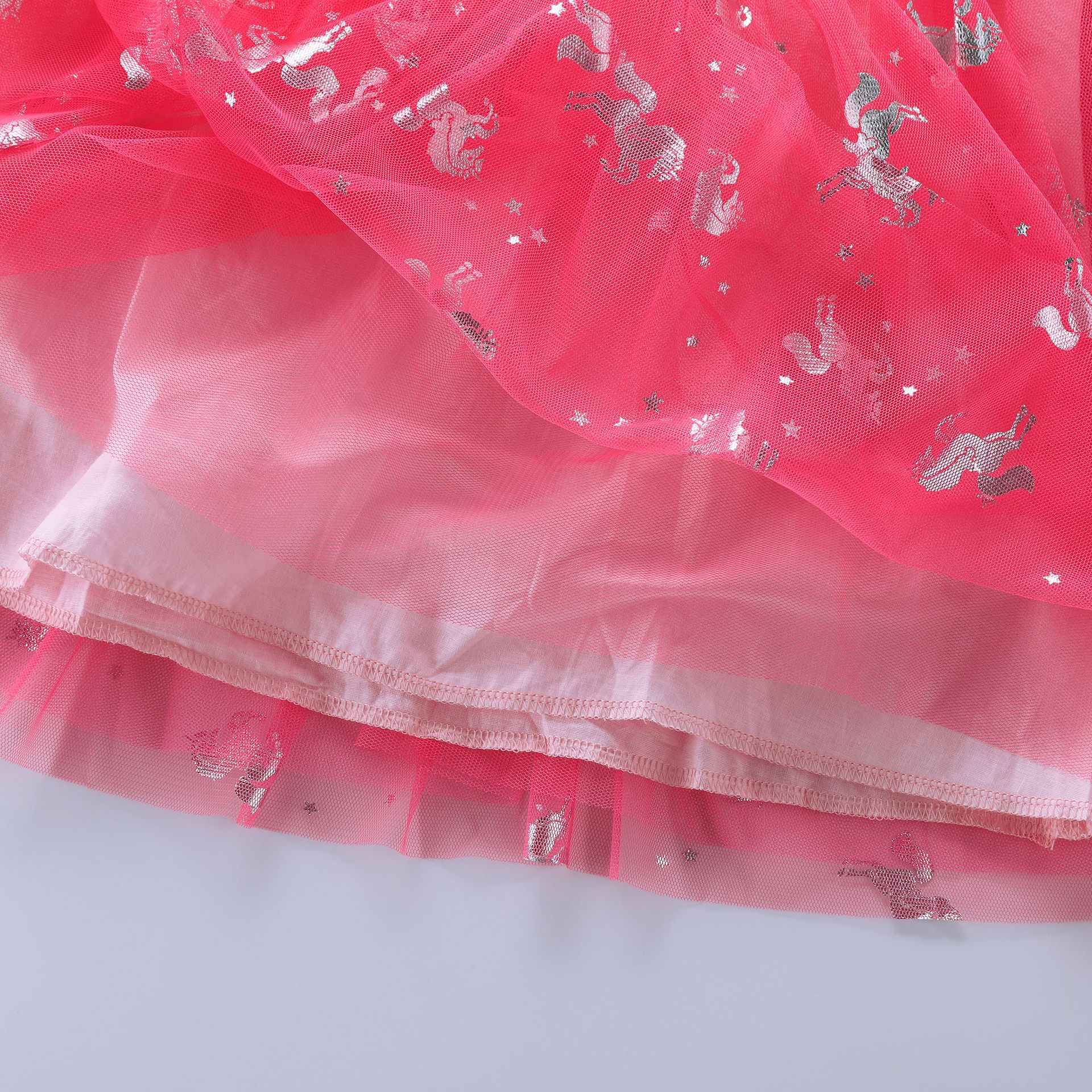 어린이 소녀 긴 소매 만화 유니콘 인쇄 가을 메쉬 스티칭 원피스 LH1702