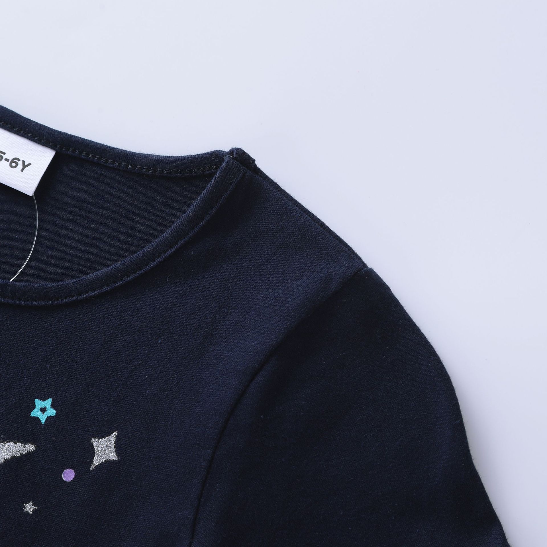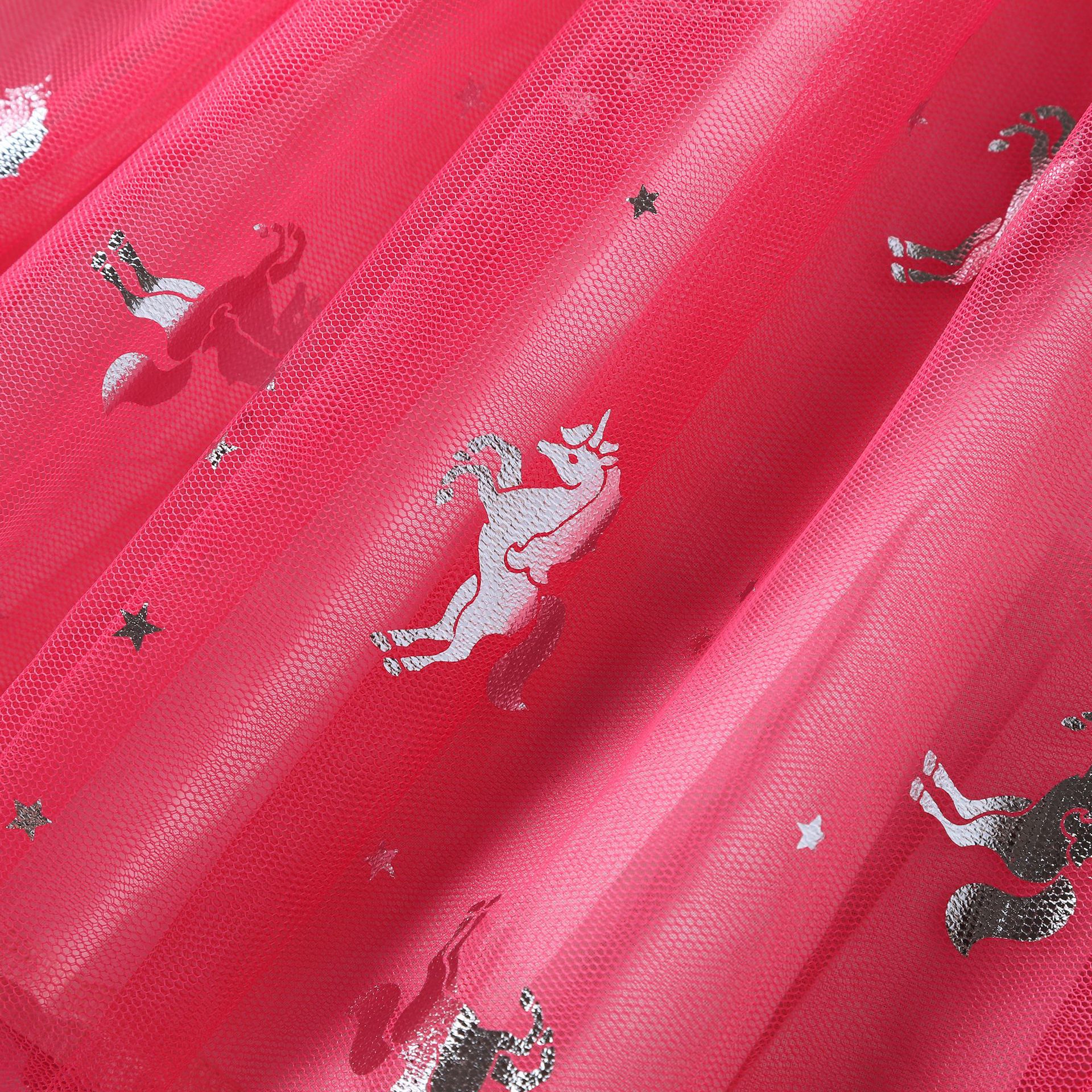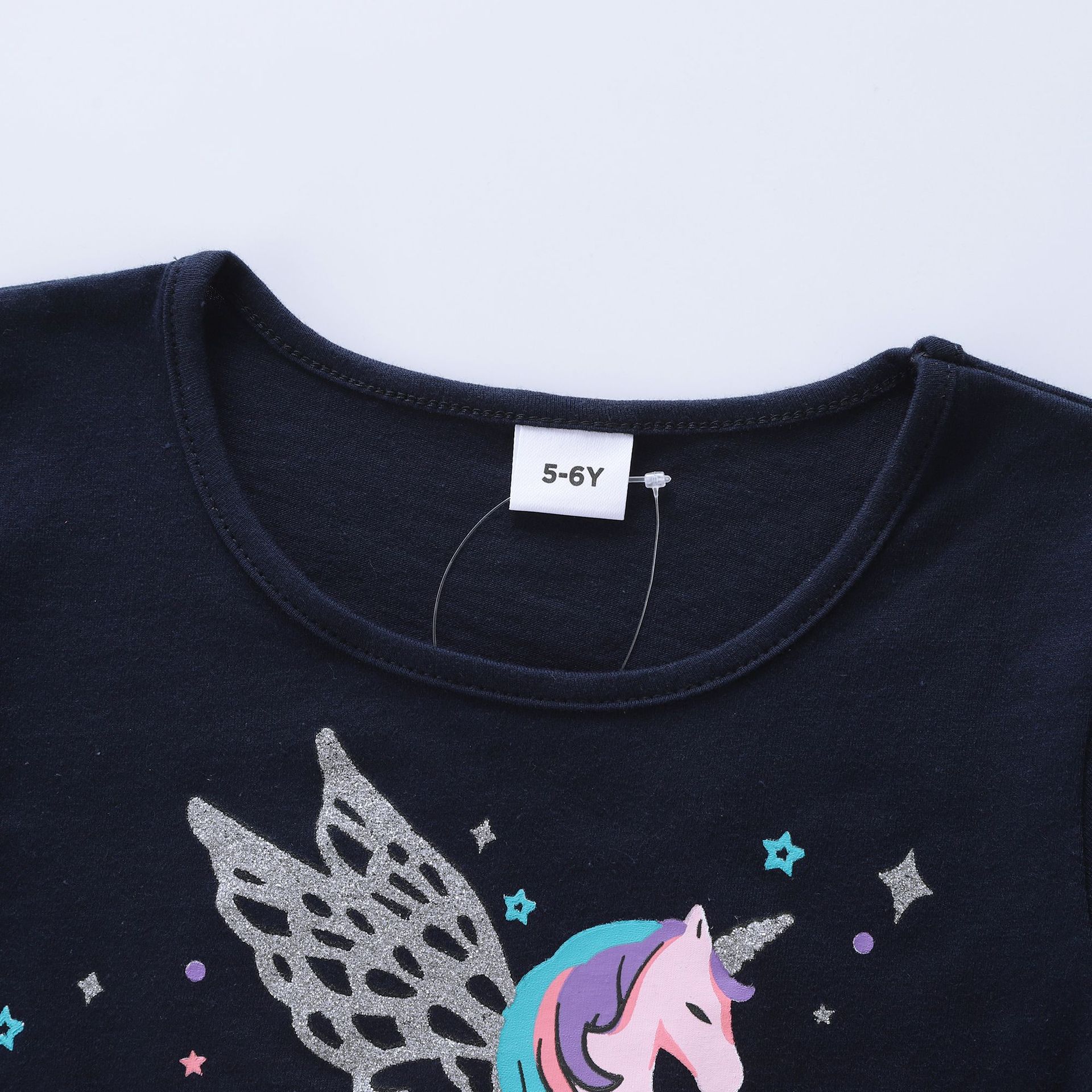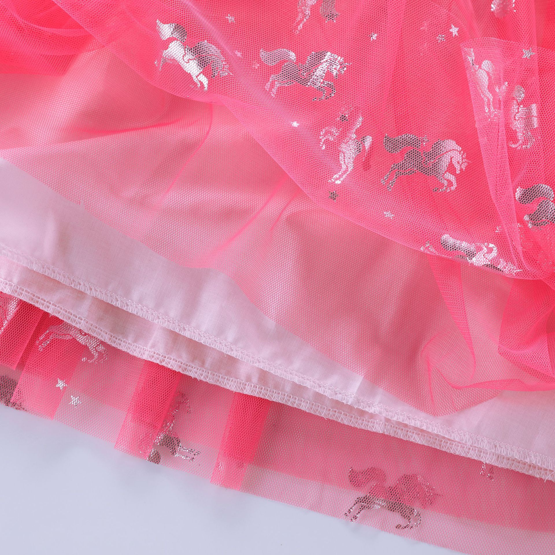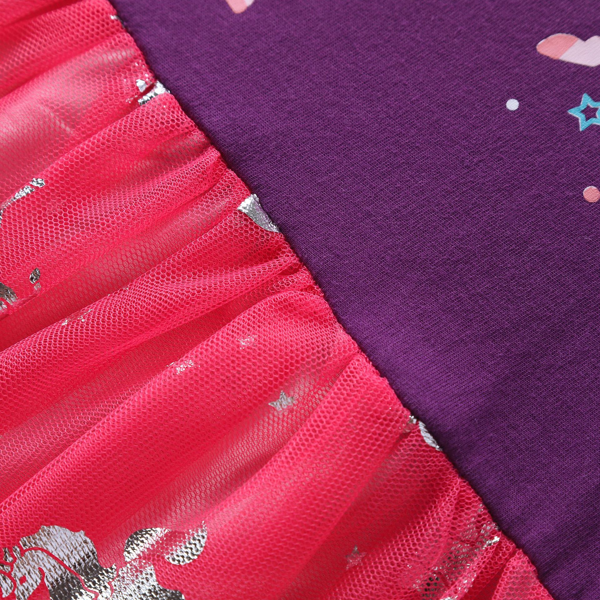 어린이 소녀 긴 소매 만화 유니콘 인쇄 가을 메쉬 스티칭 원피스 LH1702