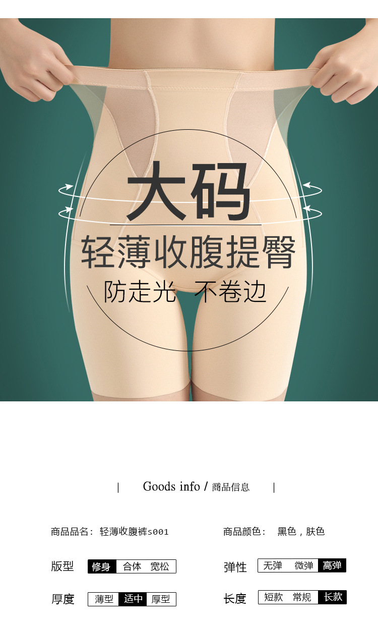 플러스 사이즈 높은 허리 배꼽 안전 바지 안티 라이트 컬링 여름 얇은 통통녀 레깅스 엉덩이 속옷 001