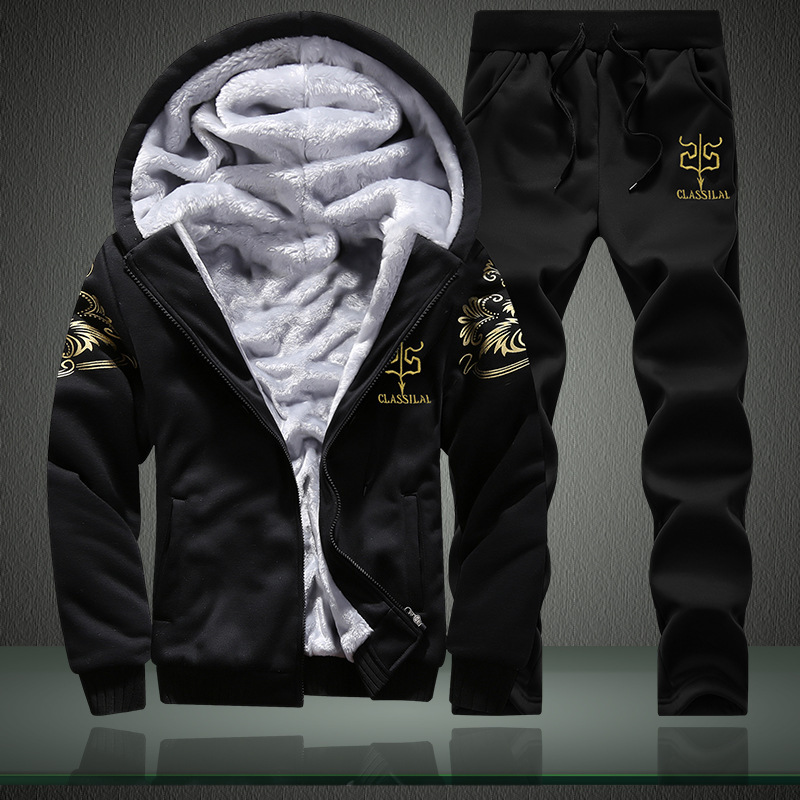 겨울 기모 두꺼운 남성 레저 스포츠 세트 청소년 한국 후드 스웨터 세트 남성 도매 JC