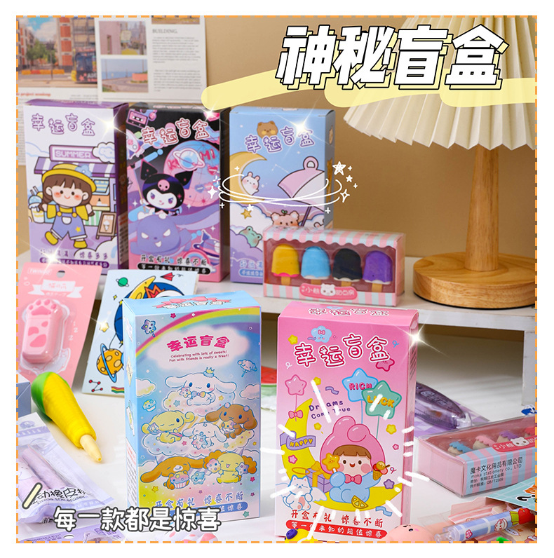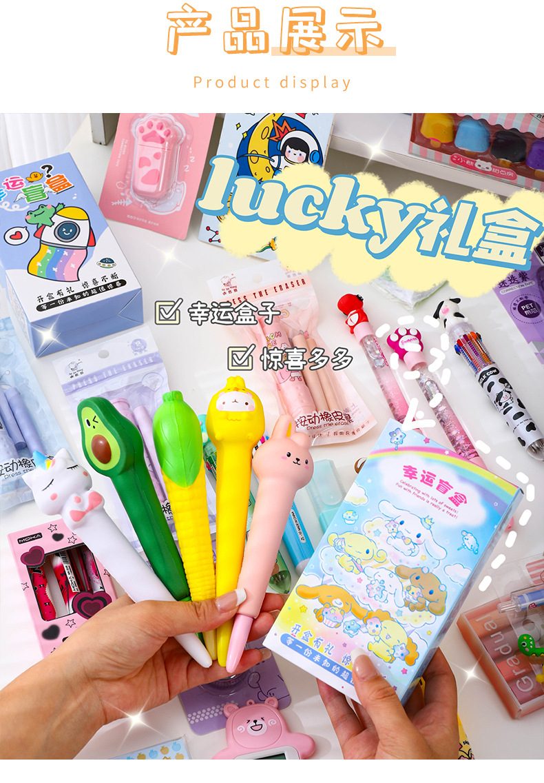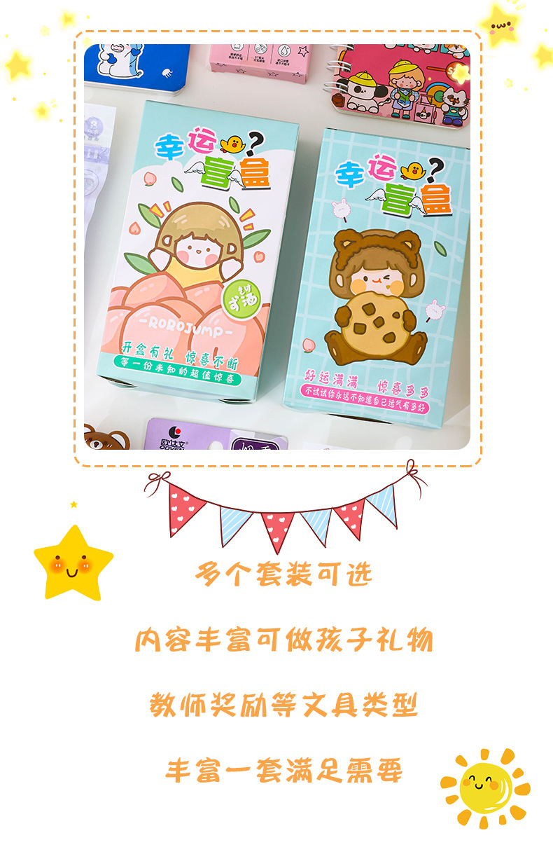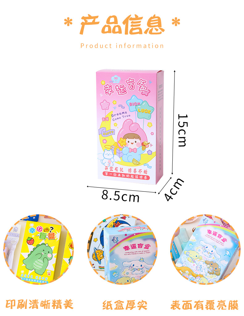 文具盲盒必出6-8样,图片仅供参考!!!以收到实物为准,如想知道里面大概有什么的可以咨询客服索要实拍图,实物图或观看直播讲解提前看下大概有什么,在考虑要不要买,不支持收到不满意和说图片不符要退差价或仅退款等要求