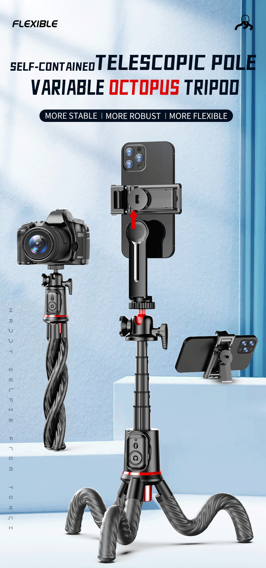 C03 Octopus Selfie 스틱 플로어 스탠딩 삼각대 휴대용 블루투스 데스크탑 사진 스탠드 야외 라이브 방송 촬영스토어 가기