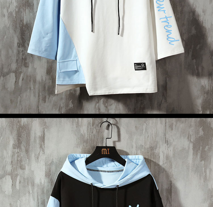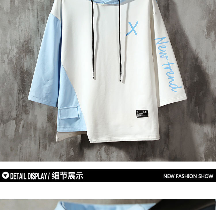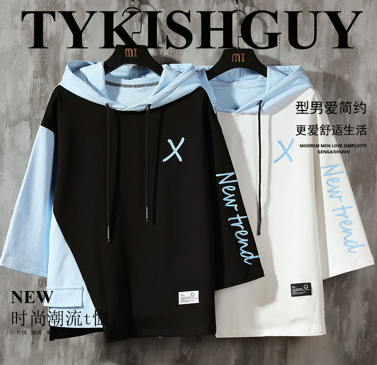 여름 후드 7 점 소매 땀 남자의 유행 한국 스타일 느슨한 박쥐 반팔 티셔츠 남자의 플러스 사이즈 7 점 소매스토어 가기