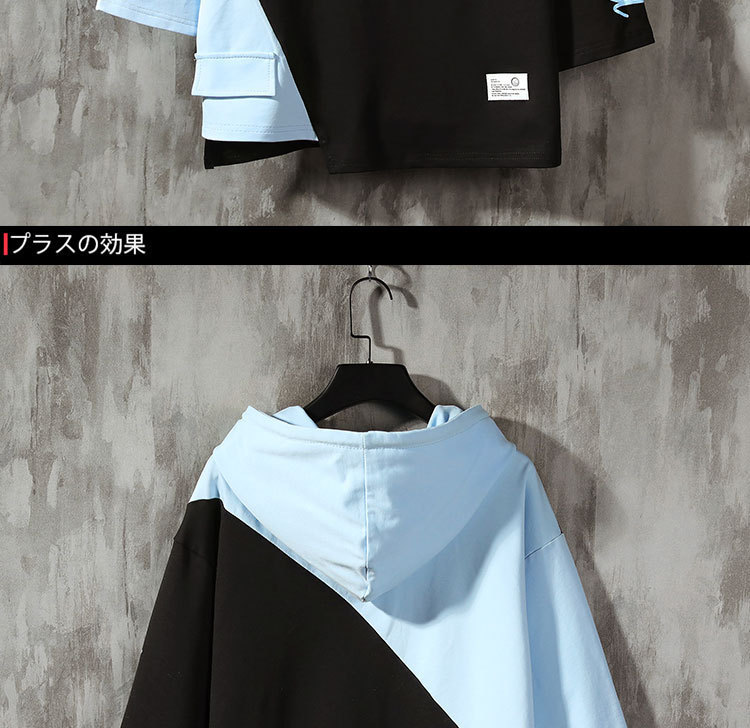 여름 후드 7 점 소매 땀 남자의 유행 한국 스타일 느슨한 박쥐 반팔 티셔츠 남자의 플러스 사이즈 7 점 소매