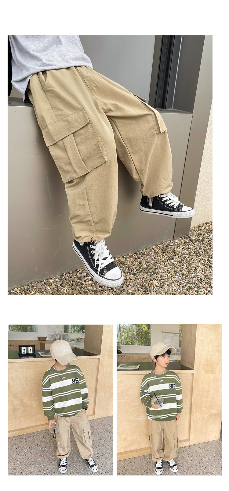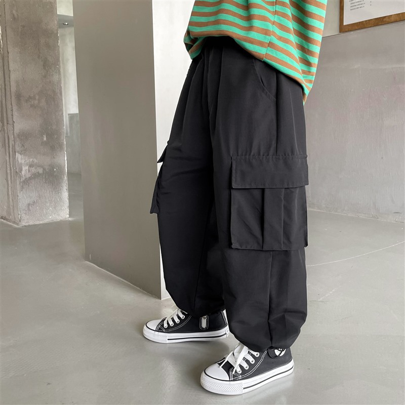 소년 한국 스타일 작업복 큰 주머니 캐주얼 바지 2025 봄, 가을 새로운 스타일 어린이 순수 면화 아동 의류 Haima 가족 추세