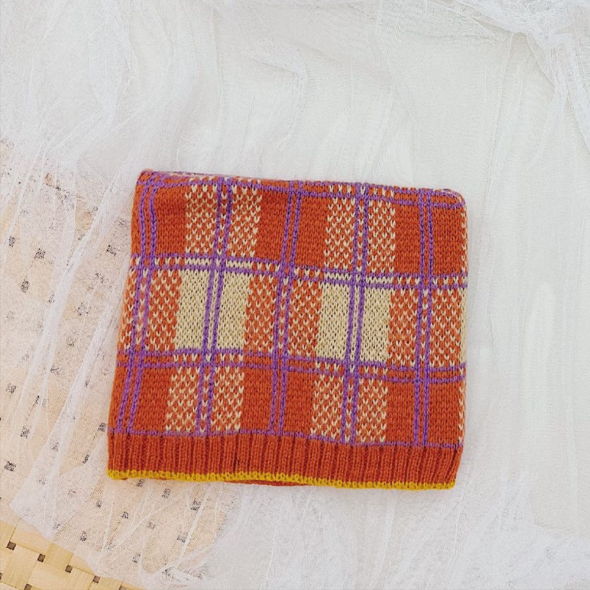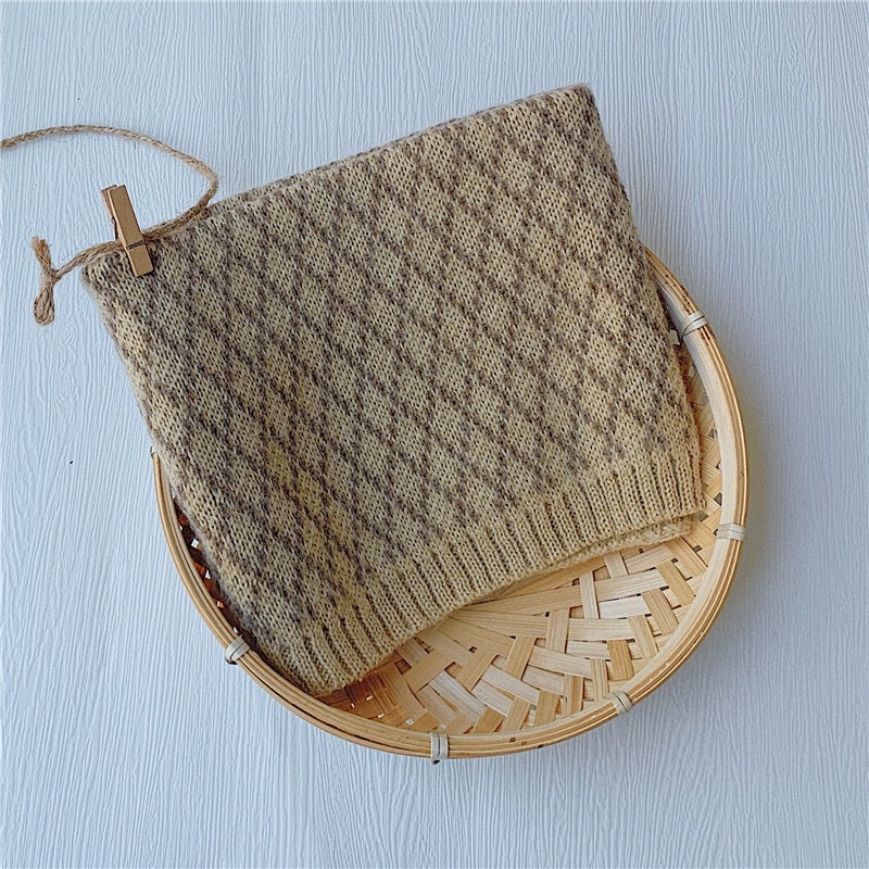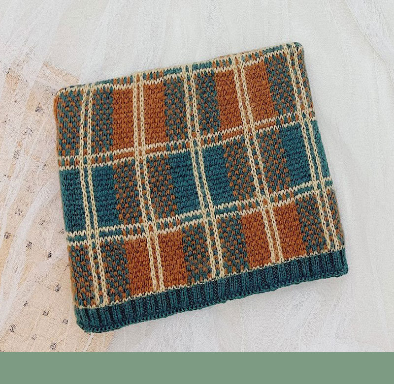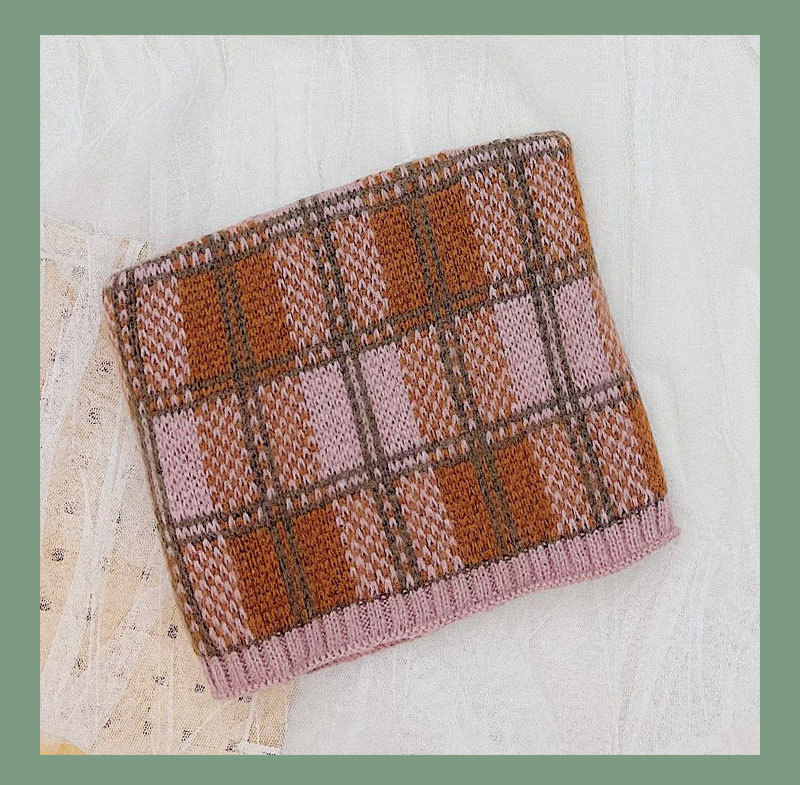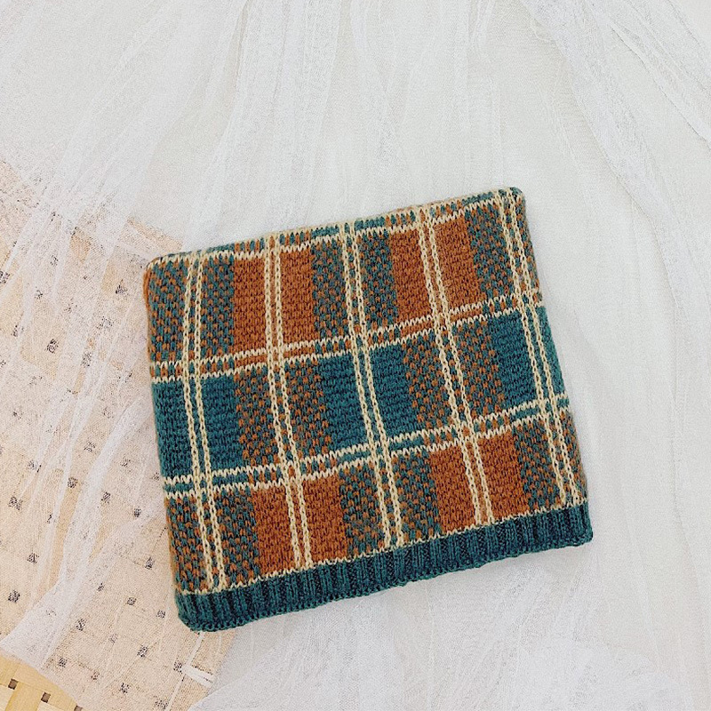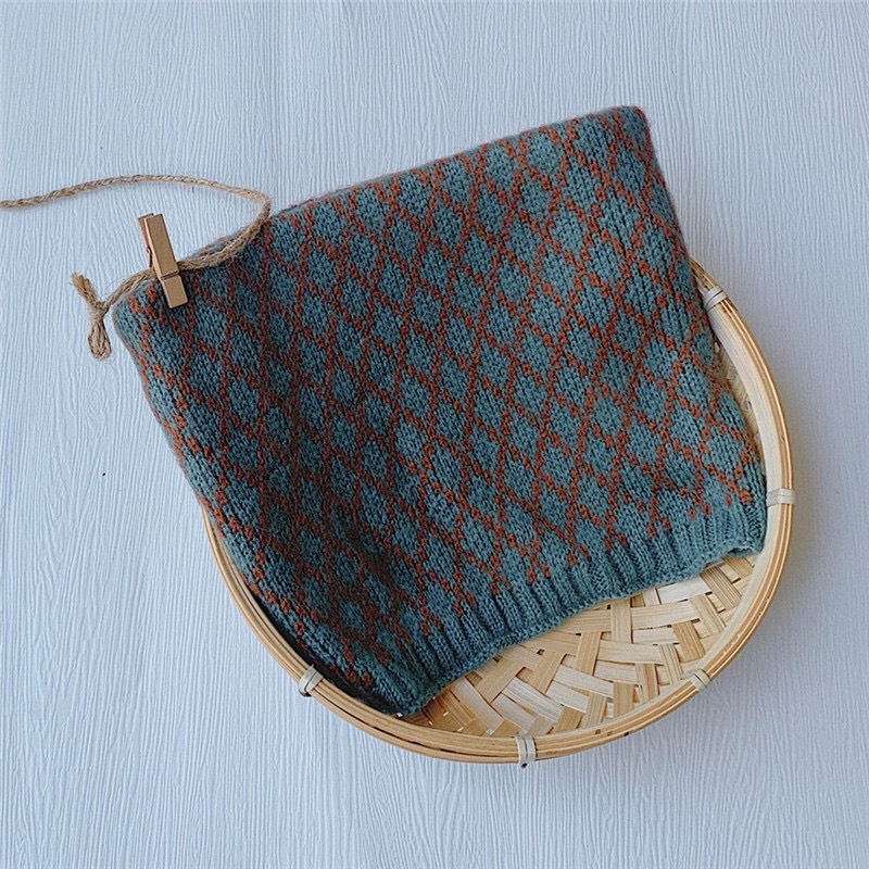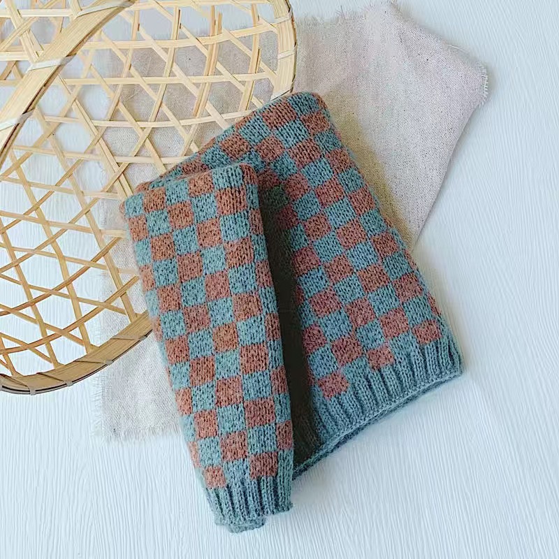 가을 겨울 따뜻한 니트 스카프, 어린이용 컬러 블록 체크무늬 목도리, 남녀 아기용 니트 목도리