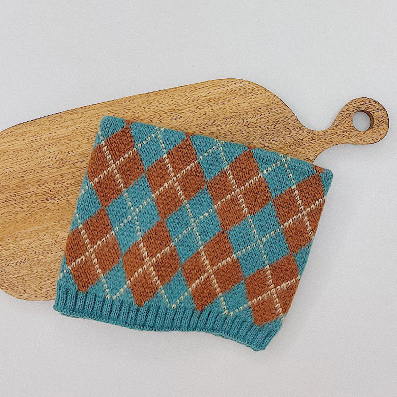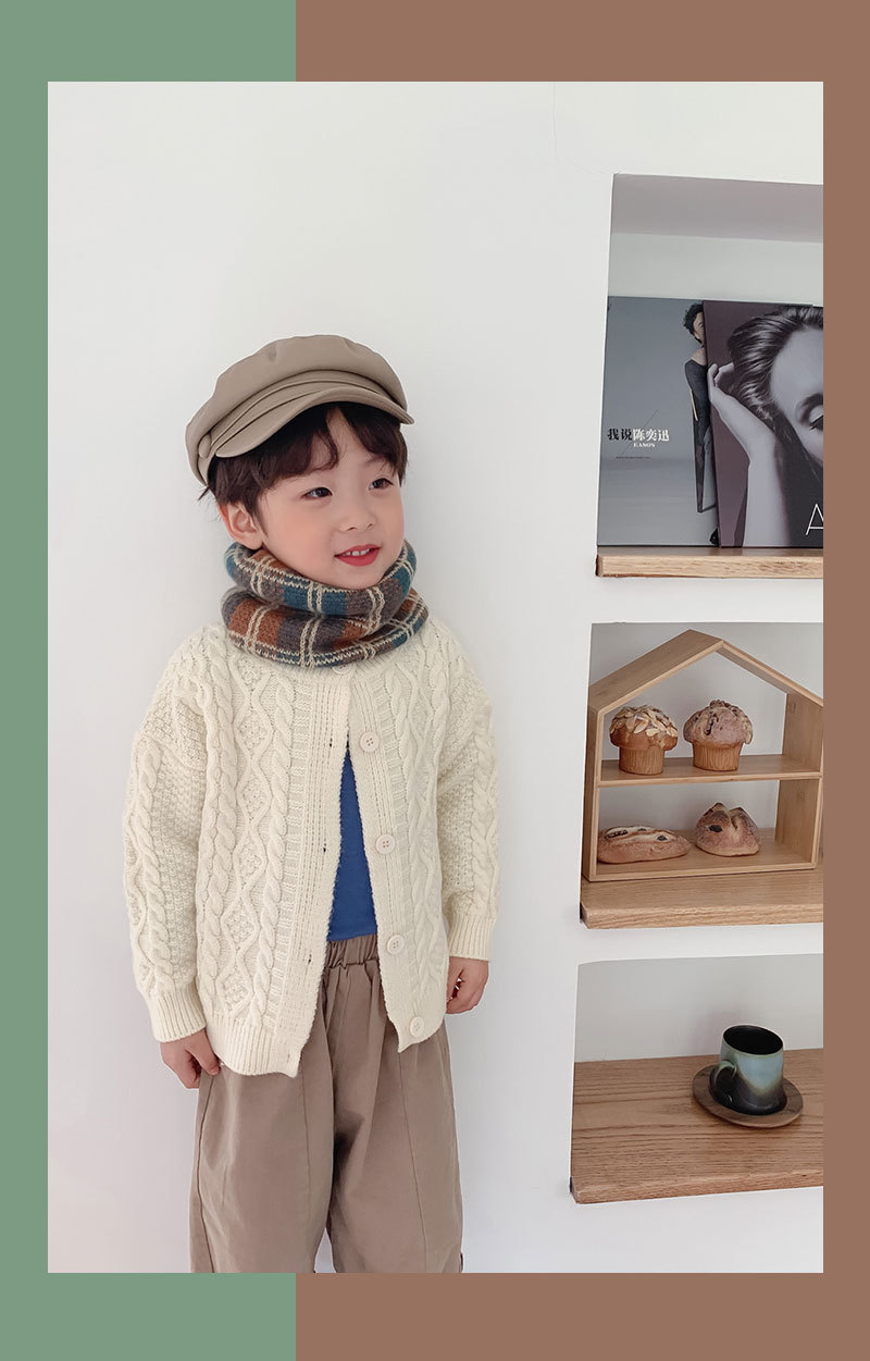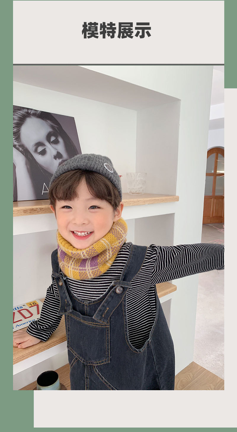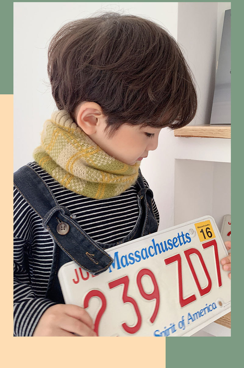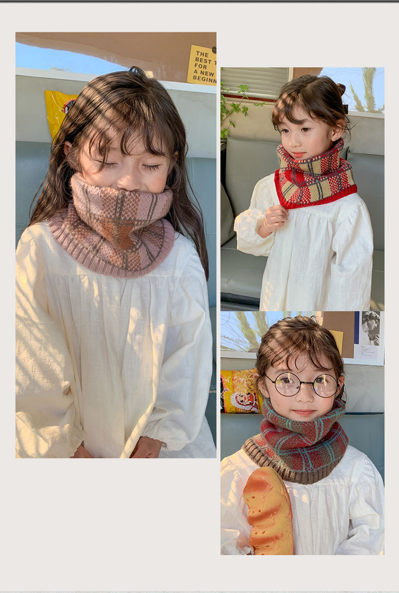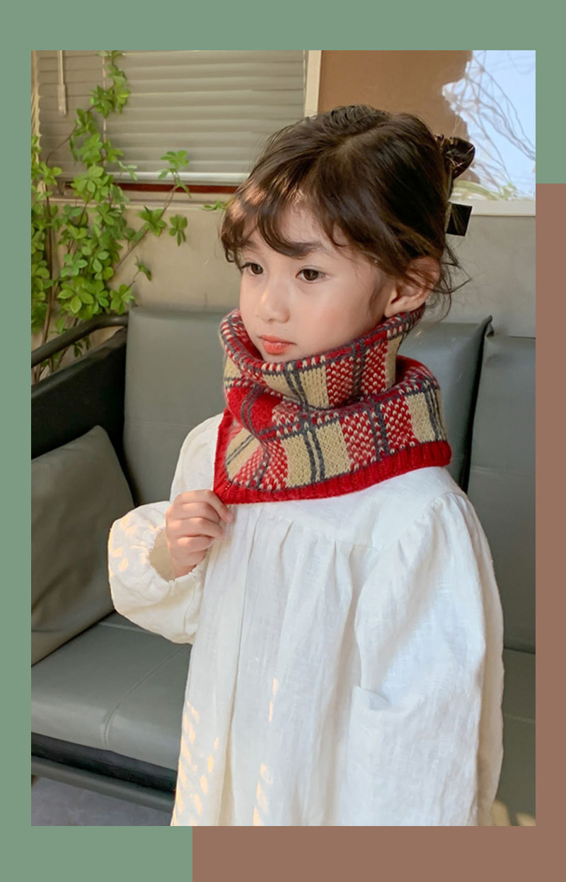 가을 겨울 따뜻한 니트 스카프, 어린이용 컬러 블록 체크무늬 목도리, 남녀 아기용 니트 목도리스토어 가기