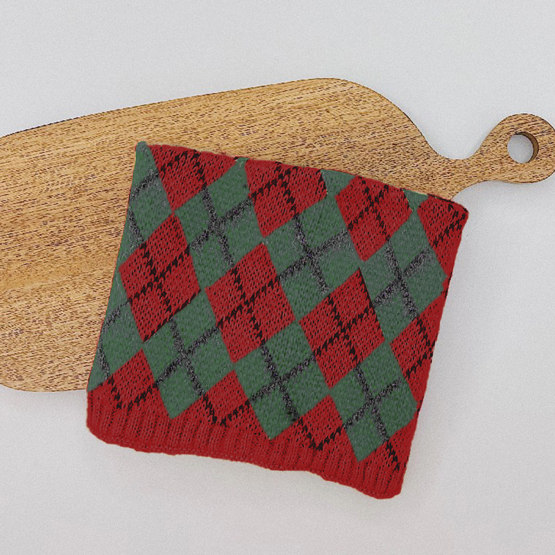 • Tianzi 그리드 스카프/빨간색과 녹색