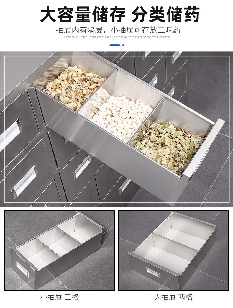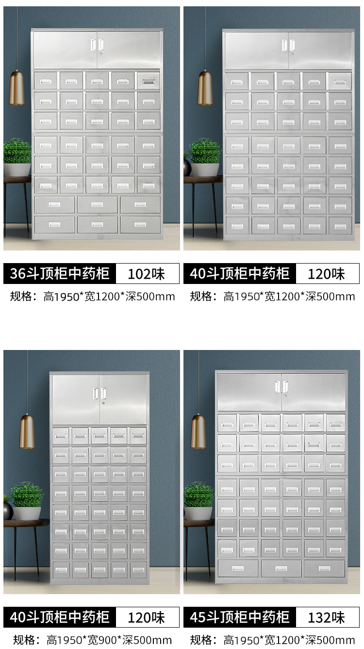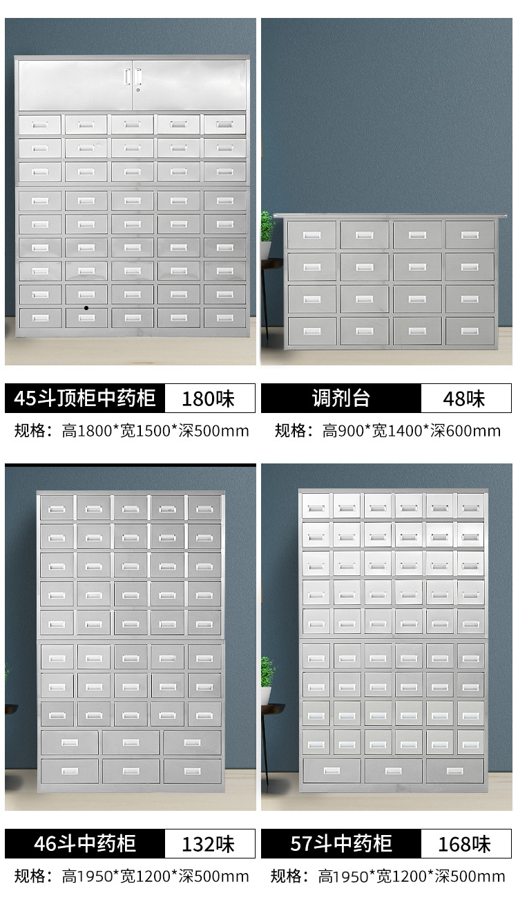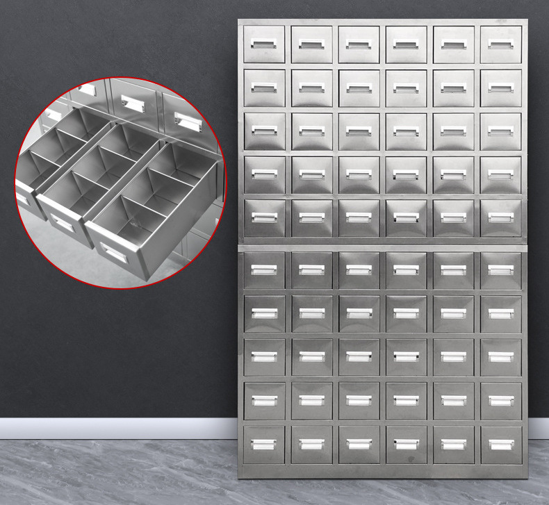 304 스테인레스 스틸 전통 한약 내각 조정 가능한 테이블 클리닉 약국 서약 내각 전통 중국 의학 Duodou Baizi 한약 두꺼운 서랍스토어 가기