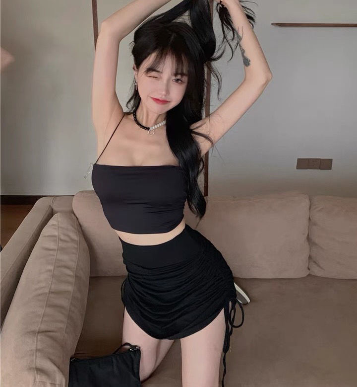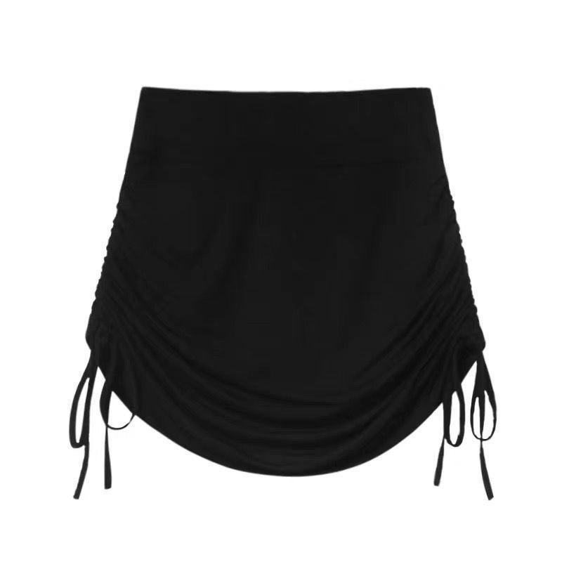 하이 웨이스트 주름 섹시 퓨어 스커트 여성 가방 힙 A 라인 스커트 졸라매는 끈 여름 미니 스커트 2023 나이트 클럽 스커트