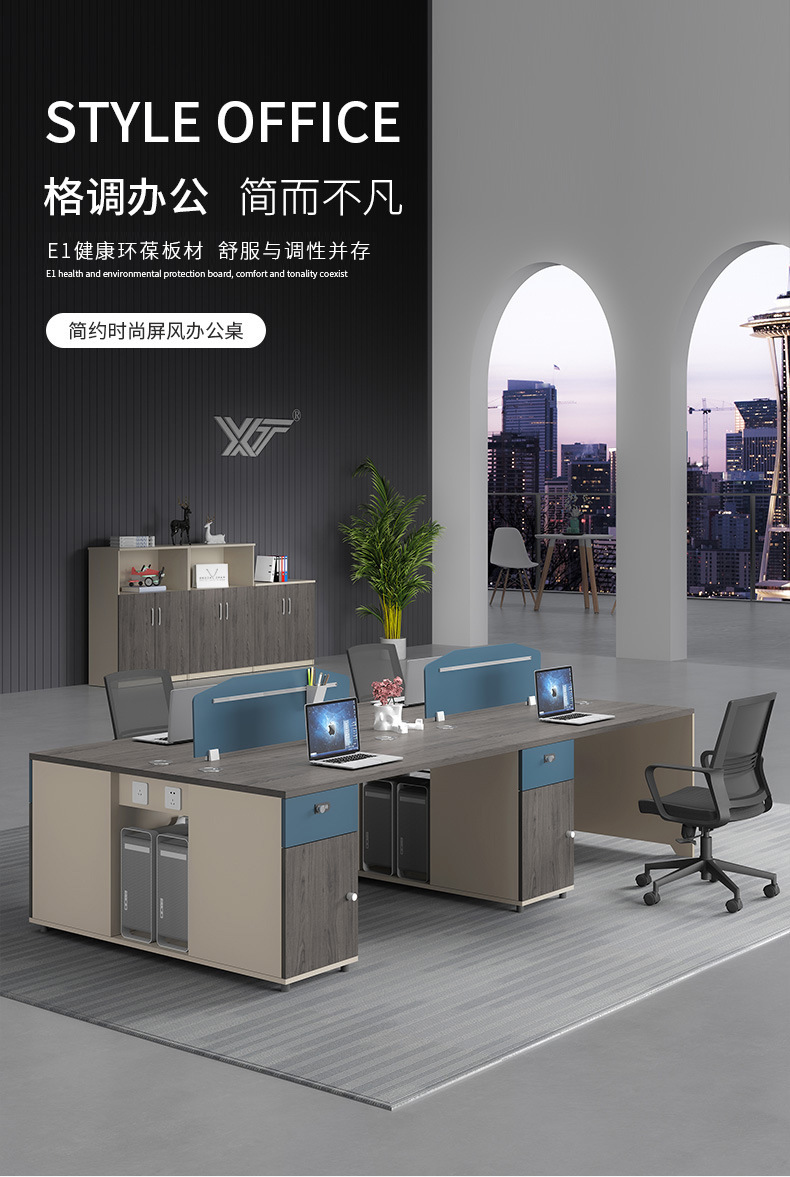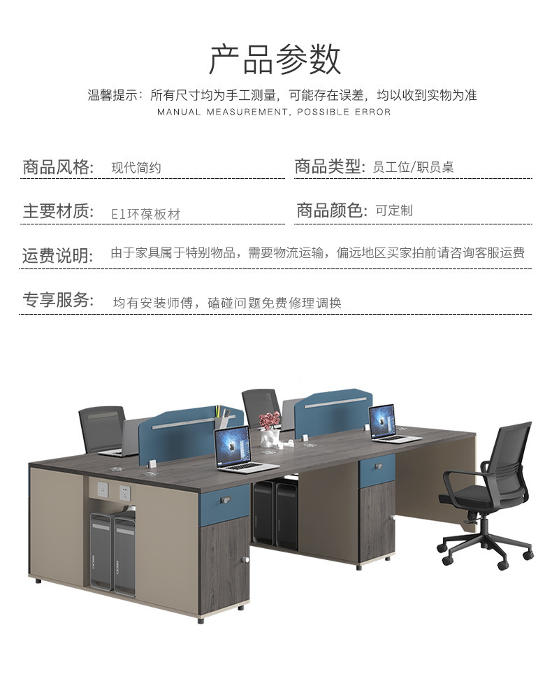 사무실 직원 책상 4 인 조합 심플 모던 직원 컴퓨터 책상 사무실 책상과 의자 조합 도매스토어 가기