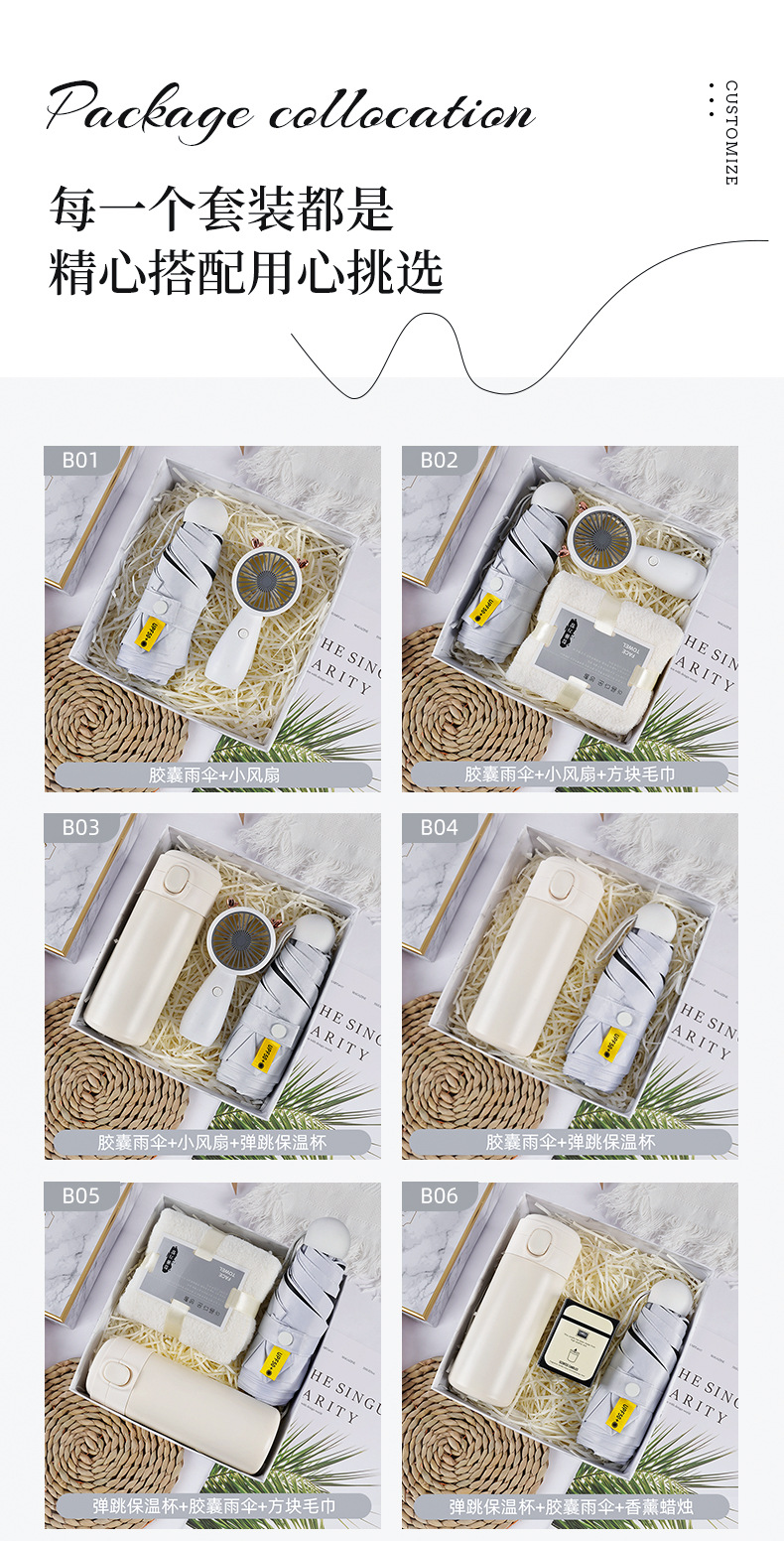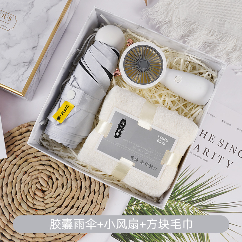 • 캡슐 우산 + 타월 + 소형 부채