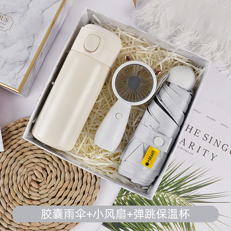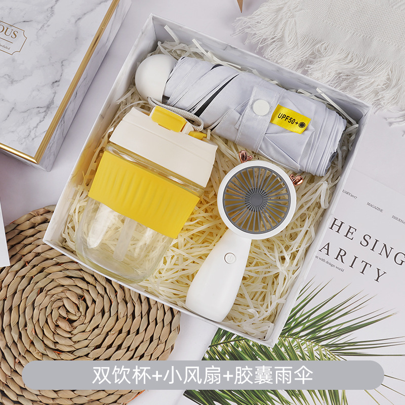 • 더블 드링크 컵 + 캡슐 우산 + 소형 부채