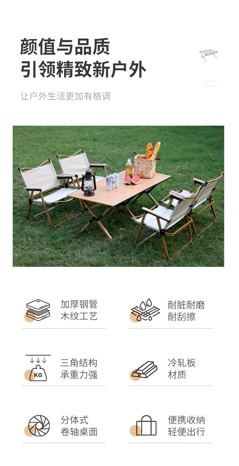 야외 통나무 탄소강 접이식 테이블과 의자 공원 노점 달걀 롤 테이블 탄소강 캠핑 바베큐 피크닉 테이블과 의자 공장 도매