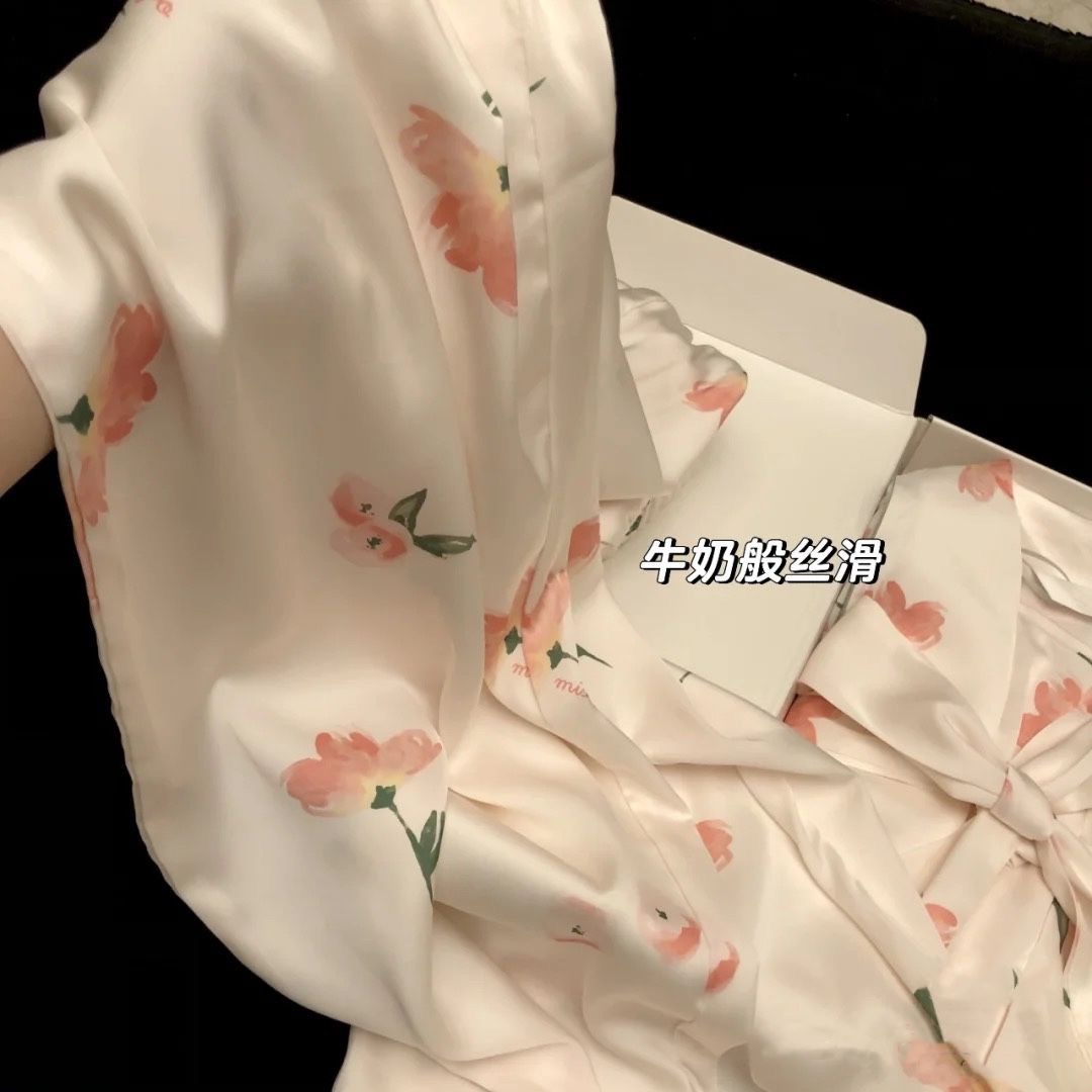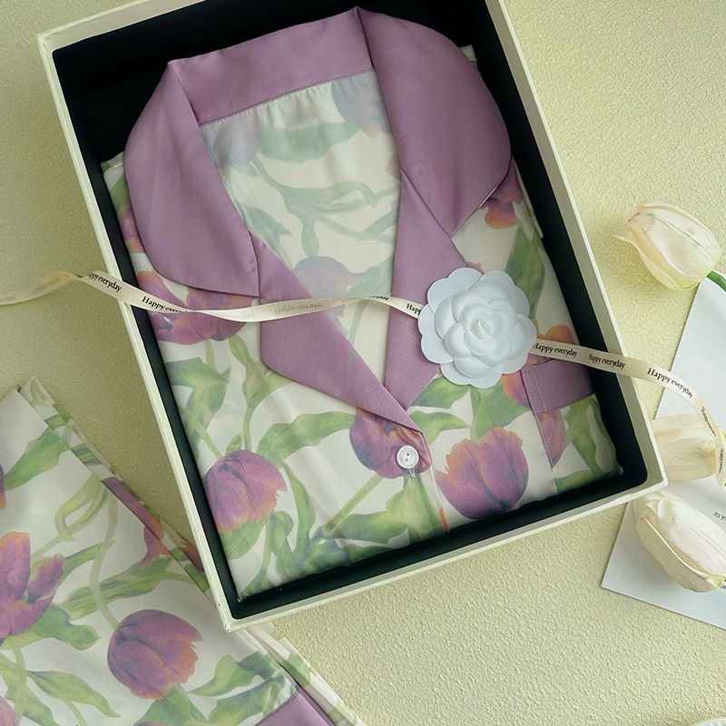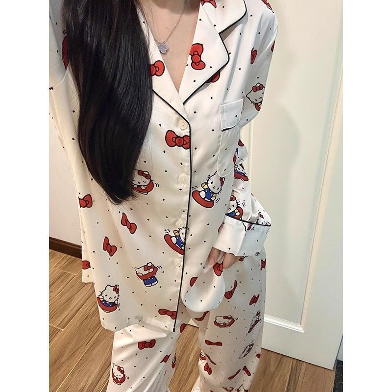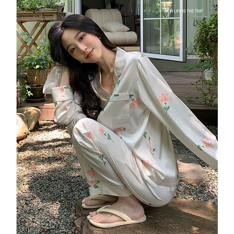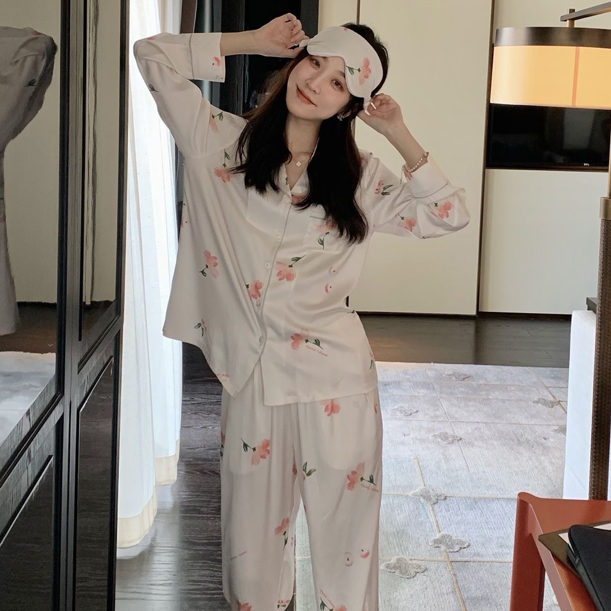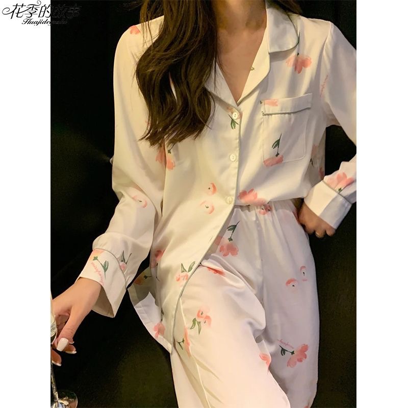 작은 빨간 승마 책 같은 스타일 봄과 가을 긴 소매 잠옷 여자의 아이스 실크 캐주얼 여자 친구 스타일 고급 감각 실크 같은 가정 옷 세트스토어 가기