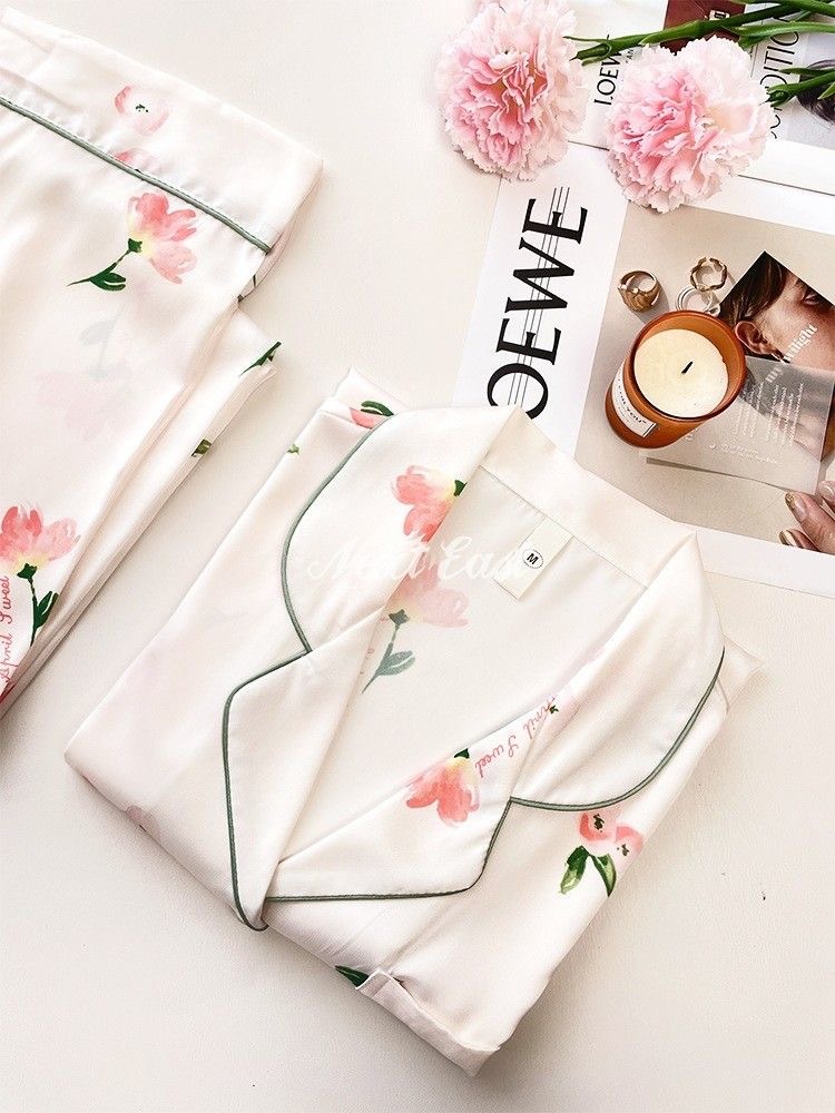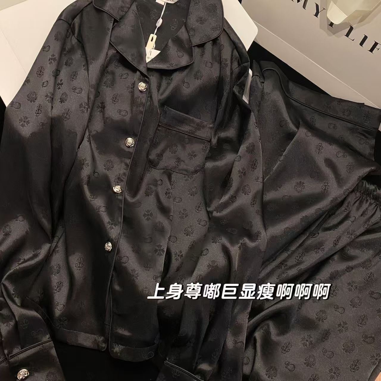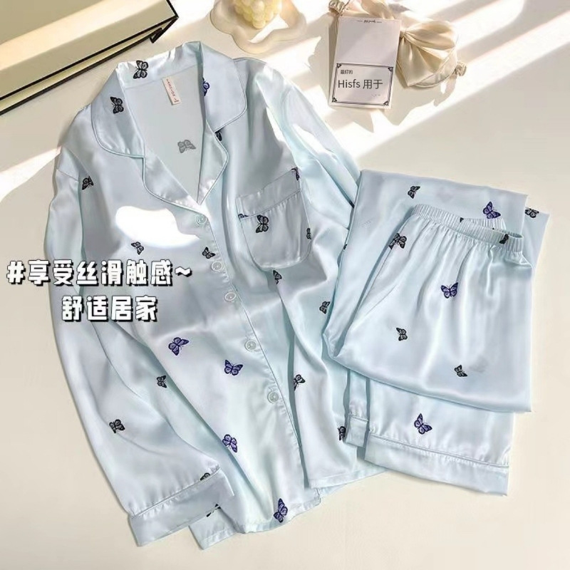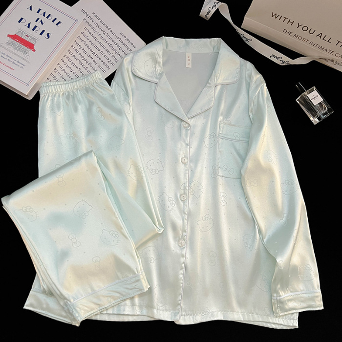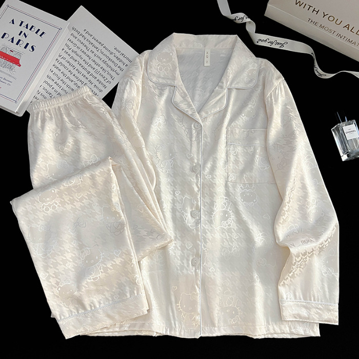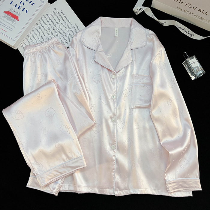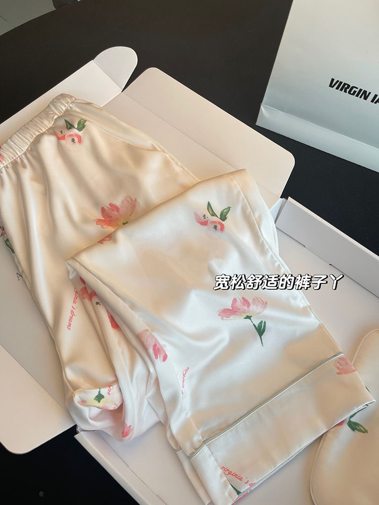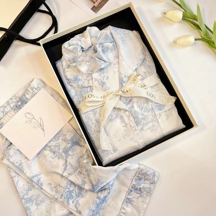 작은 빨간 승마 책 같은 스타일 봄과 가을 긴 소매 잠옷 여자의 아이스 실크 캐주얼 여자 친구 스타일 고급 감각 실크 같은 가정 옷 세트