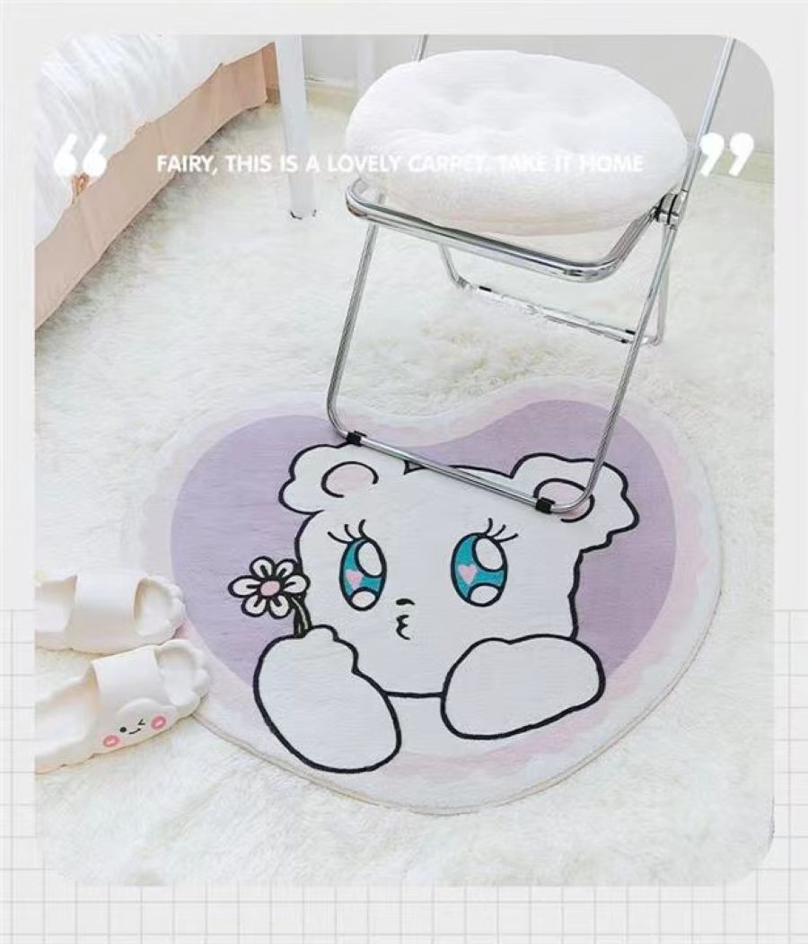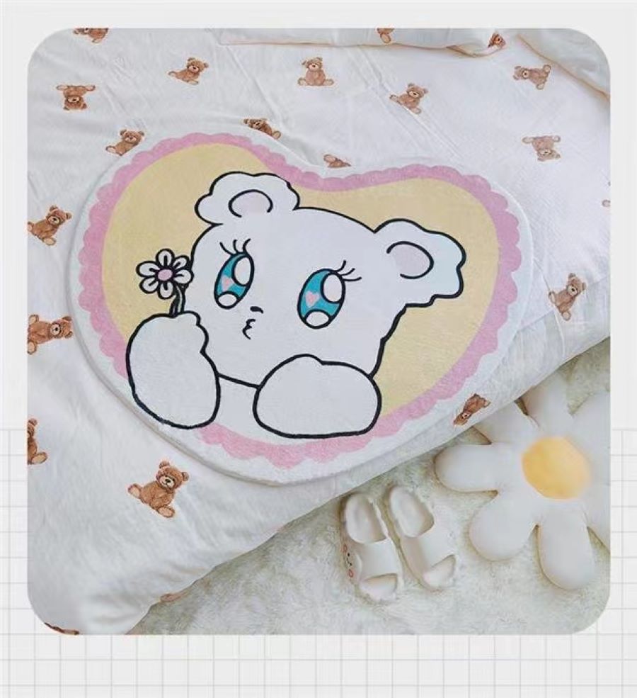 만화 하트 모양의 침실 어린이 침대 옆 담요 미끄럼 방지 부드러운 바닥 매트 모조 캐시미어 발 매트