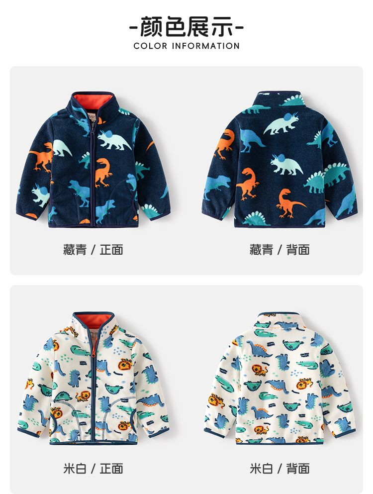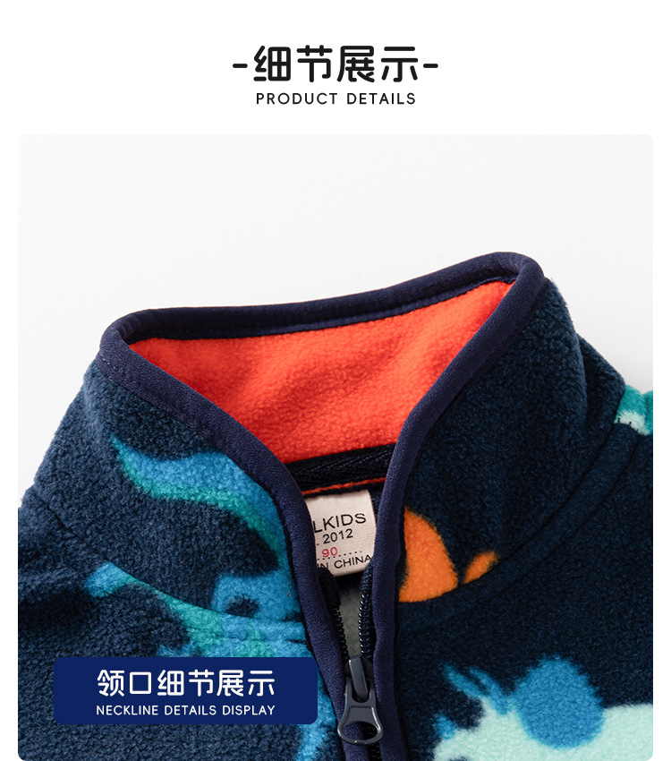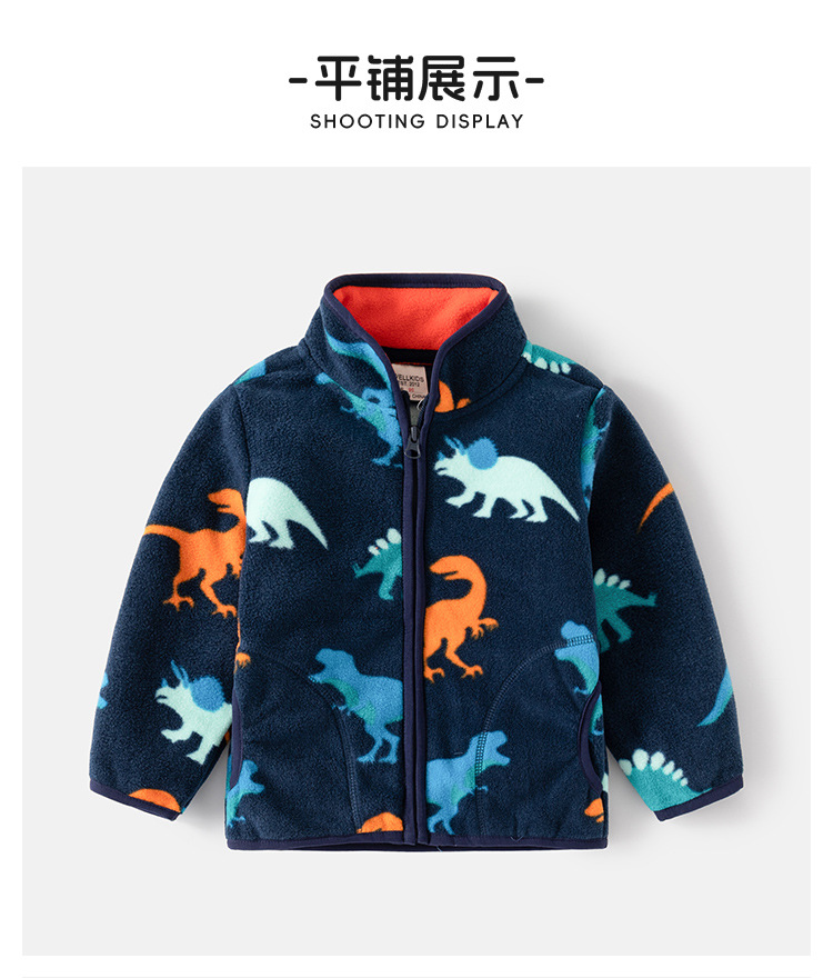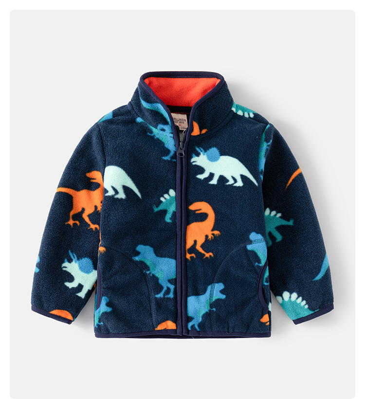 아동용 프린트 양털 자켓 남아 및 여아 따뜻한 양털 탑 가을과 겨울 착용 내부 가디건 스탠드 칼라 아동복스토어 가기