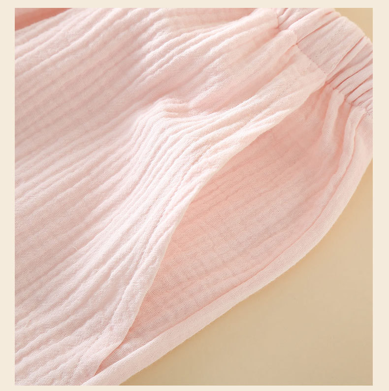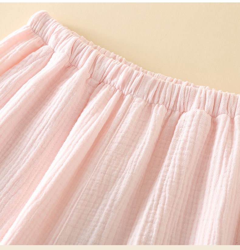 새로운 봄과 여름 여성의 면사 일본 잠옷 더블 거즈 통기성 캐주얼 가정 옷 세트 면 닙 소매