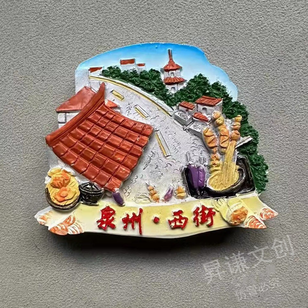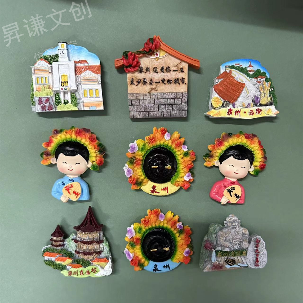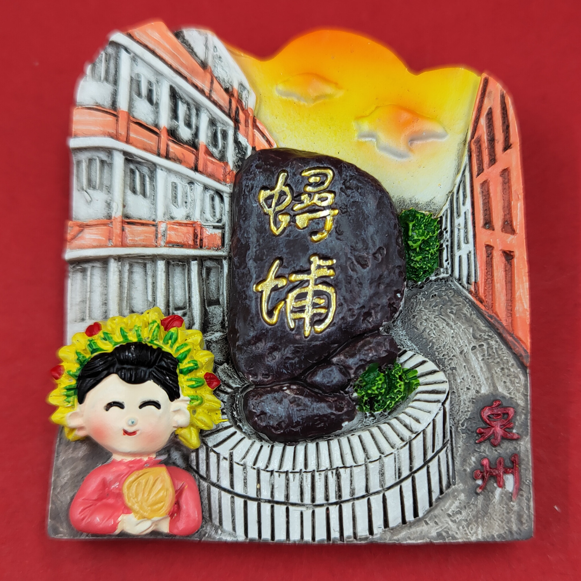 새로운 만화 장식 천주 민속 세관 명소 스테레오 수지 자기 냉장고 스티커 관광 기념품스토어 가기
