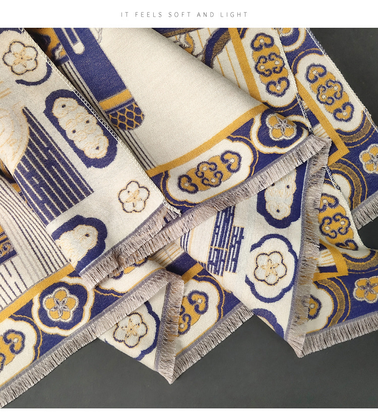 새로운 중국 스타일 항목 럭셔리 캐시미어 스카프 여성의 우아한 궁전 복숭아 꽃 기모 스카프 따뜻한 유행 양면 숄