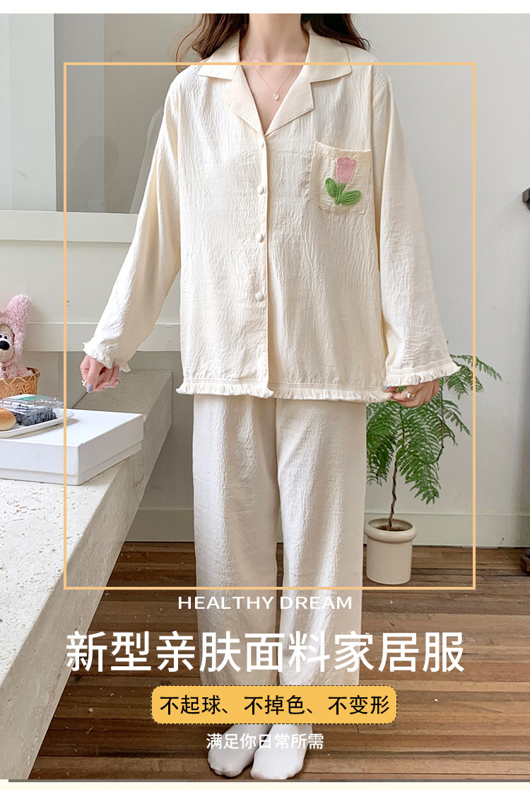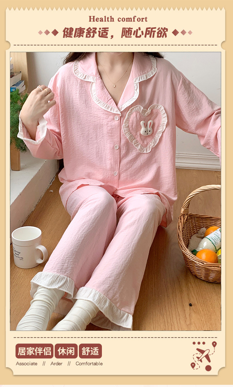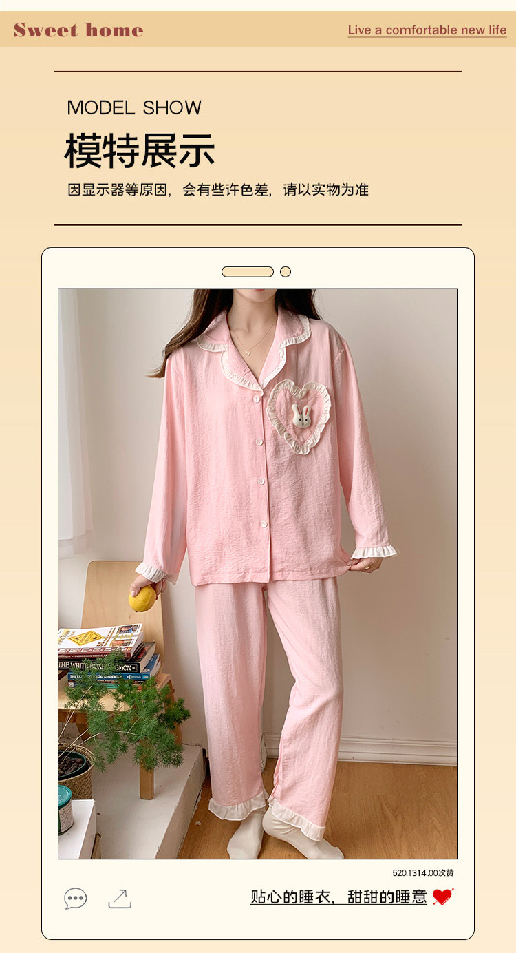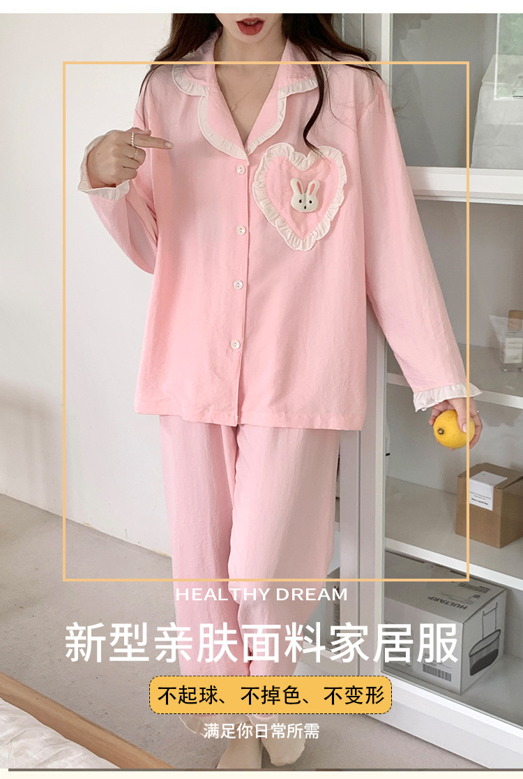 크로스 보더 잠옷 여성용 봄과 가을 새 짠 시원한 면 가디건 긴팔 바지 소녀의 달콤한 가정복 투피스 세트스토어 가기