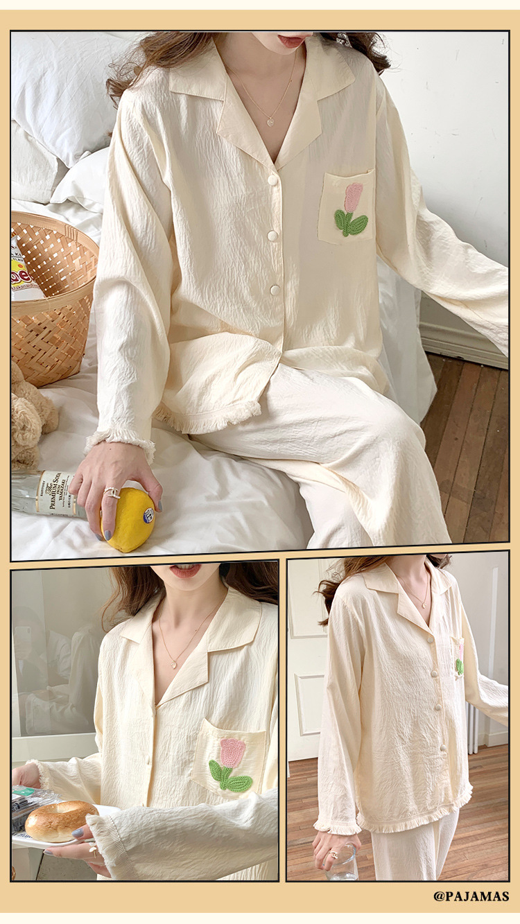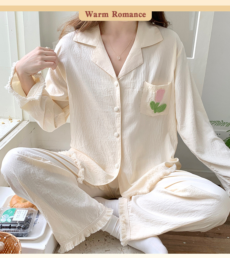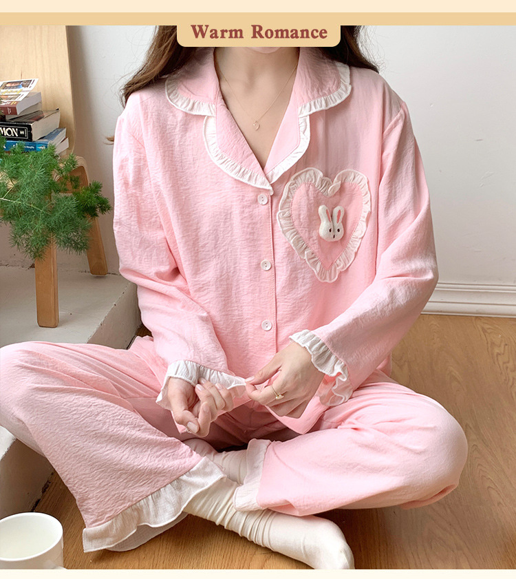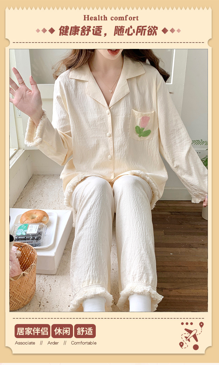 크로스 보더 잠옷 여성용 봄과 가을 새 짠 시원한 면 가디건 긴팔 바지 소녀의 달콤한 가정복 투피스 세트스토어 가기