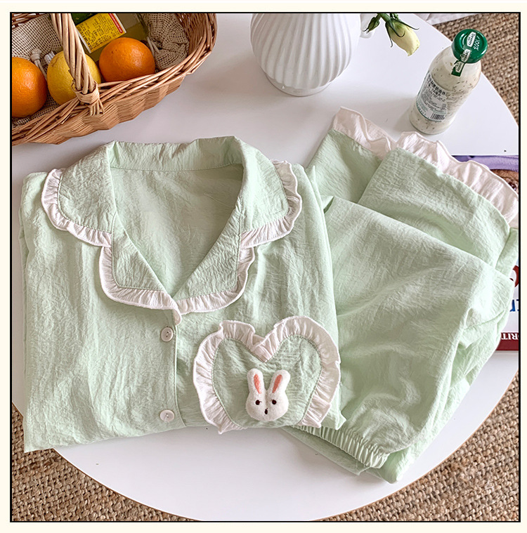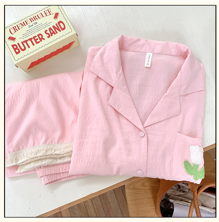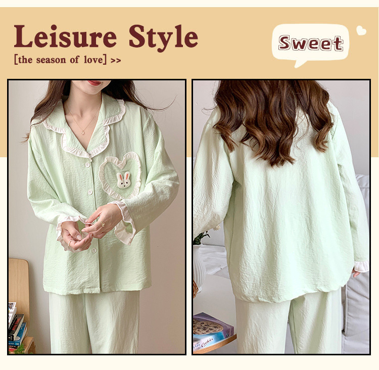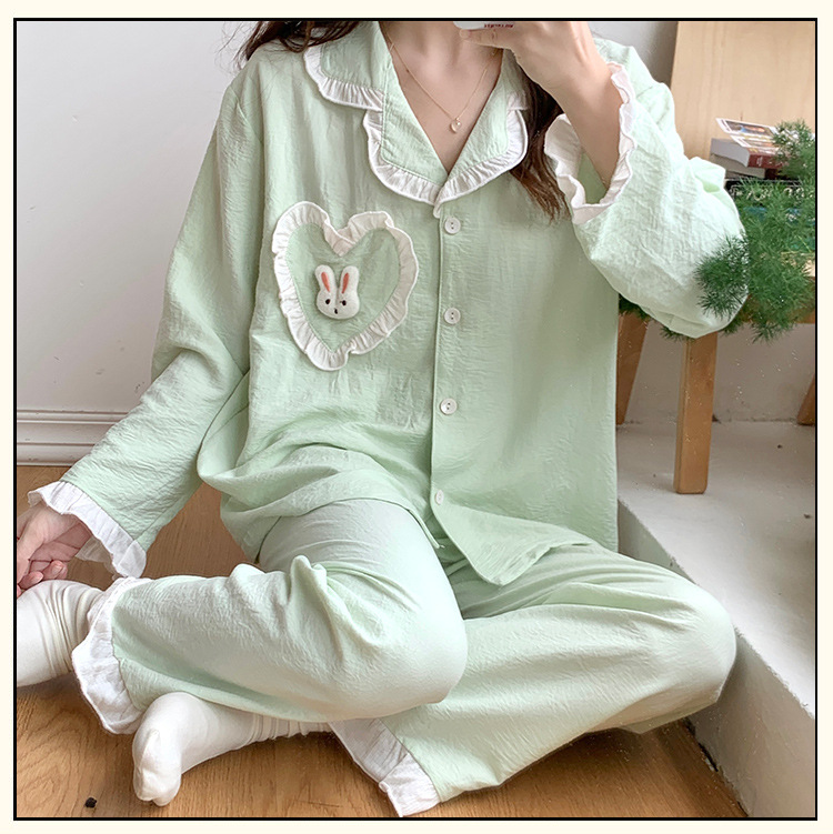 크로스 보더 잠옷 여성용 봄과 가을 새 짠 시원한 면 가디건 긴팔 바지 소녀의 달콤한 가정복 투피스 세트