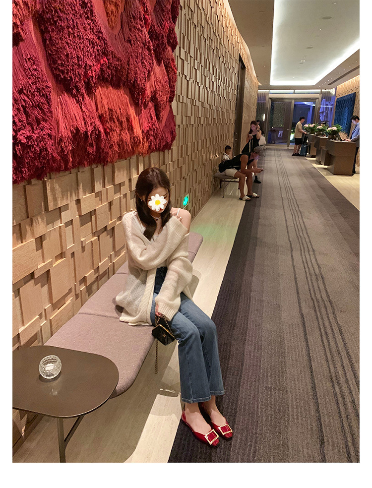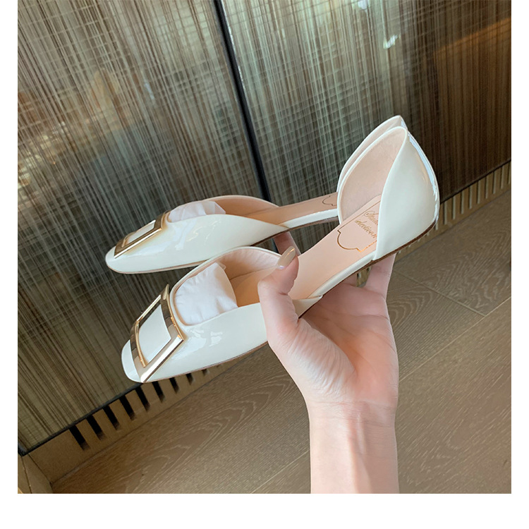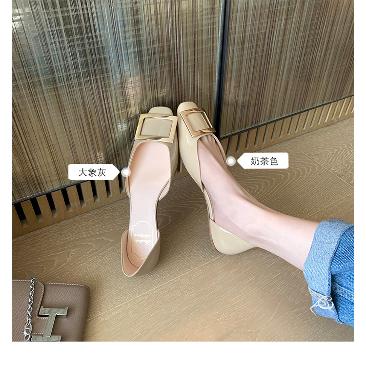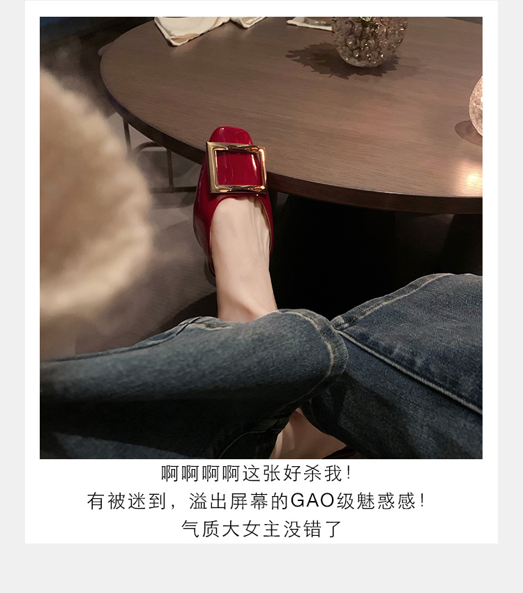 재고 포도 어머니 에나멜 가죽 플랫 모든 매치 편안한 사각 버클 얕은 입 우아한 작은 사각 발가락 통근 신발 여성용