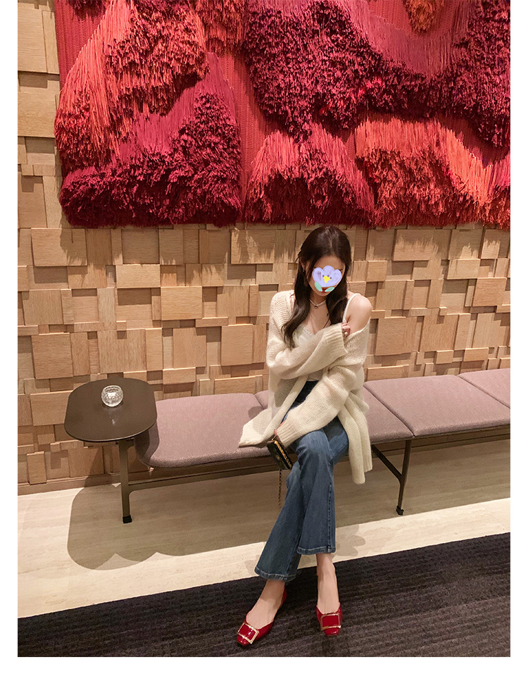 재고 포도 어머니 에나멜 가죽 플랫 모든 매치 편안한 사각 버클 얕은 입 우아한 작은 사각 발가락 통근 신발 여성용스토어 가기