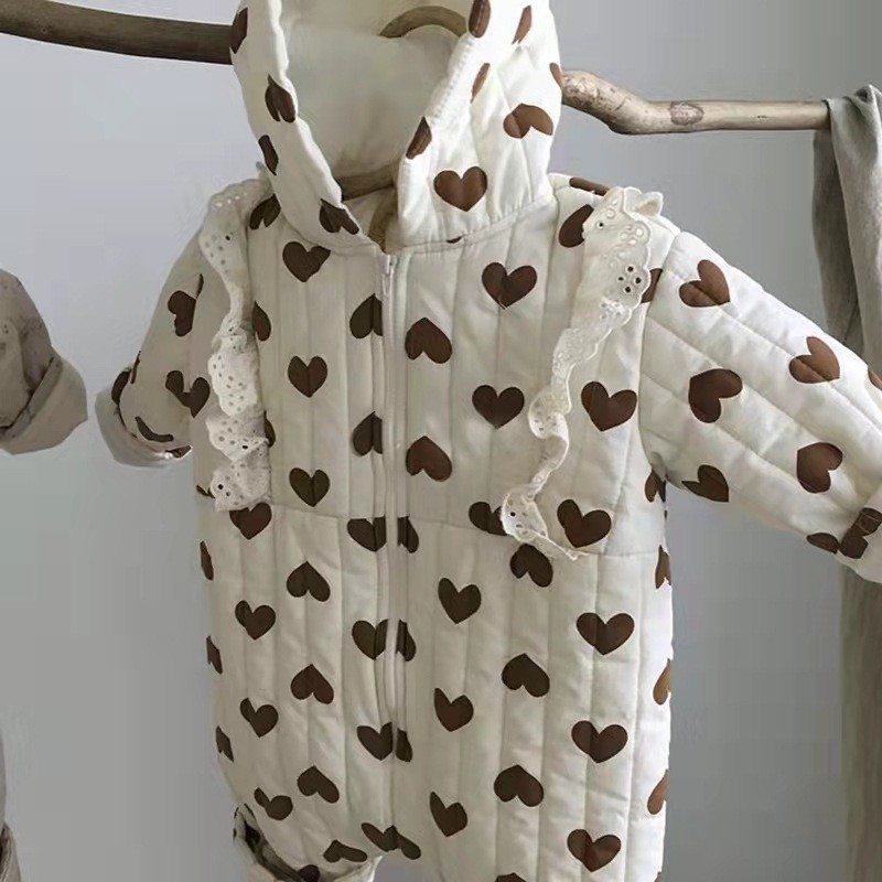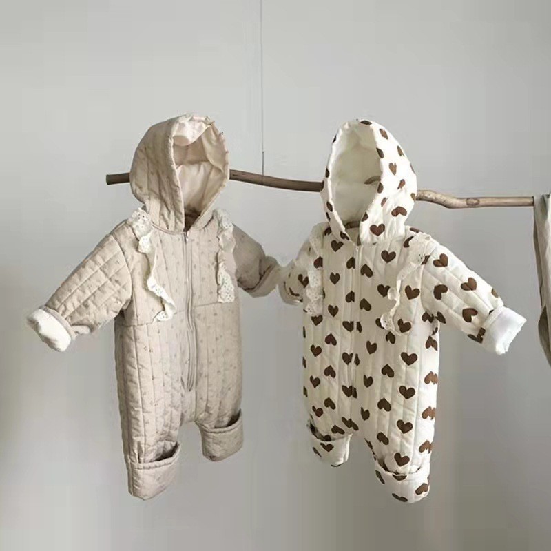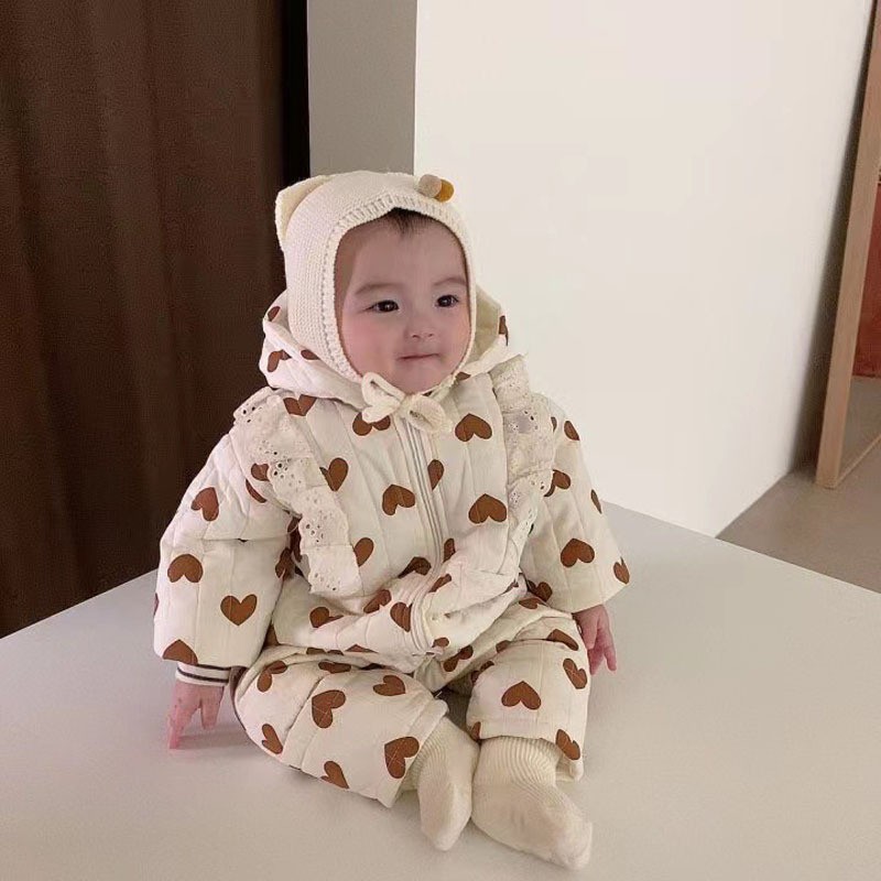 한국식 인스 타 그램 스타일 레이스 베이비 점프 수트 긴 등산 가을과 겨울 새로운 서양식 후드 점프 수트스토어 가기
