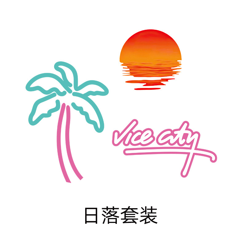 외국 무역 자동차 복고풍 해변 코코넛 나무 일몰 창 유리 스티커 방수 전기 자동차 오토바이 Grand Theft 자동 스티커