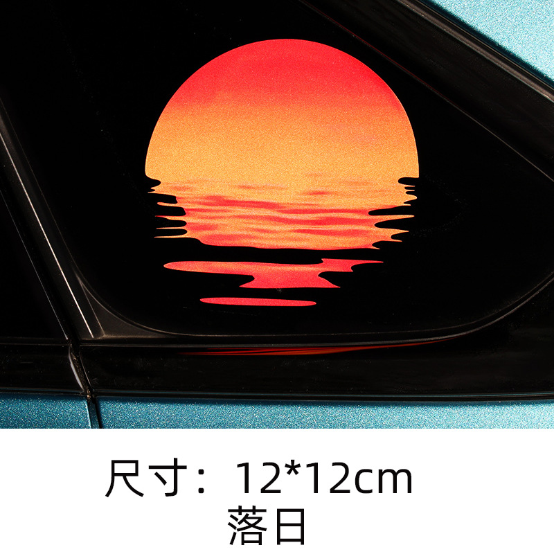 汽车贴纸复古落日余晖夕阳车窗贴防水反光电动车摩托侠盗飞车贴