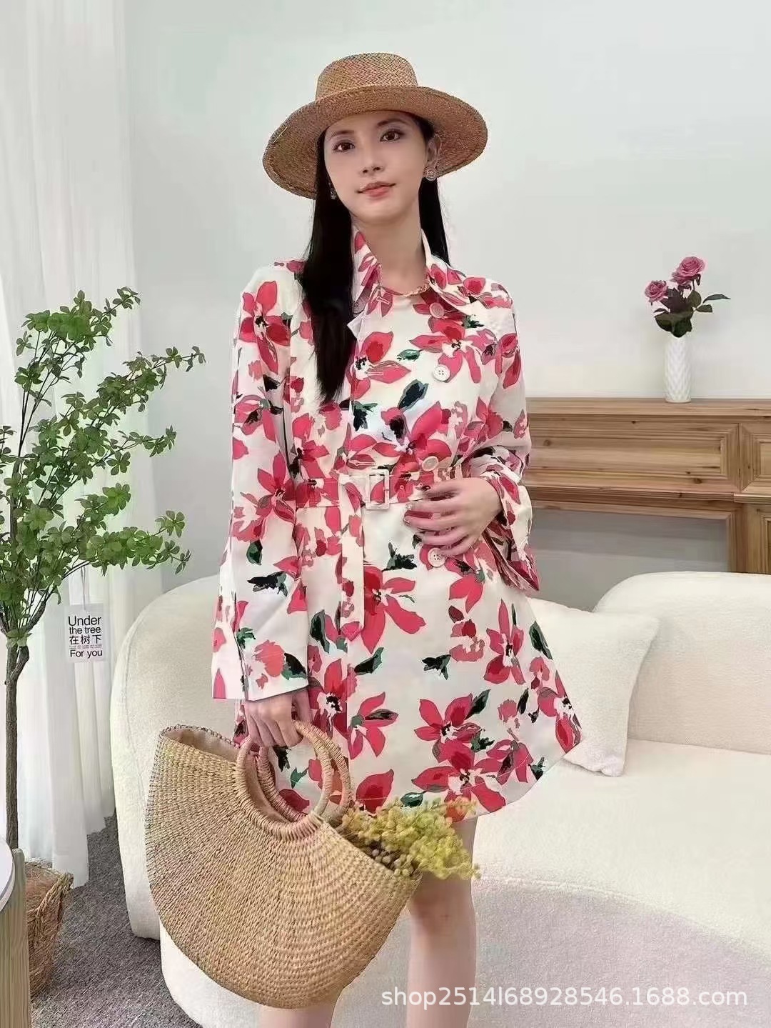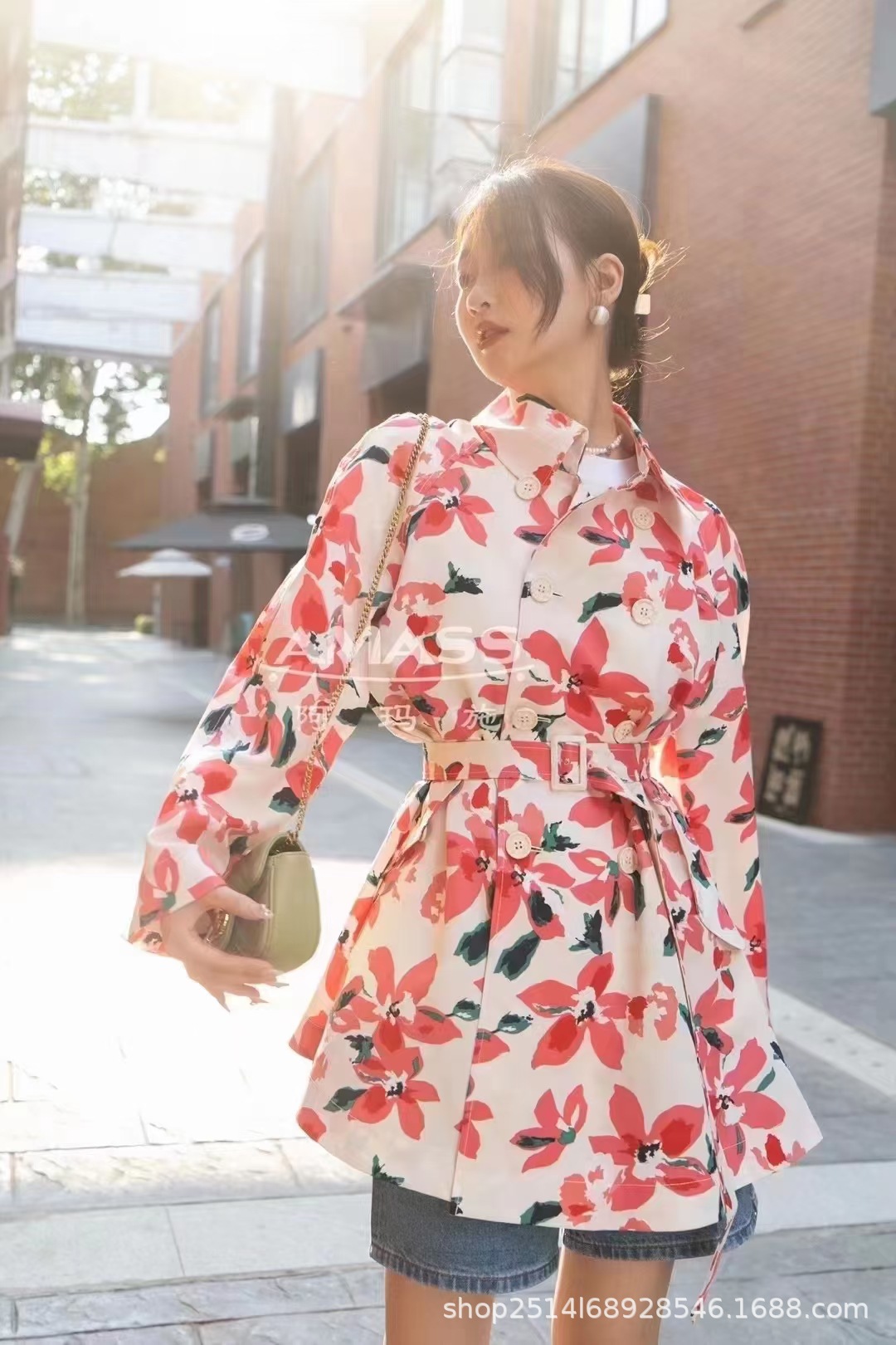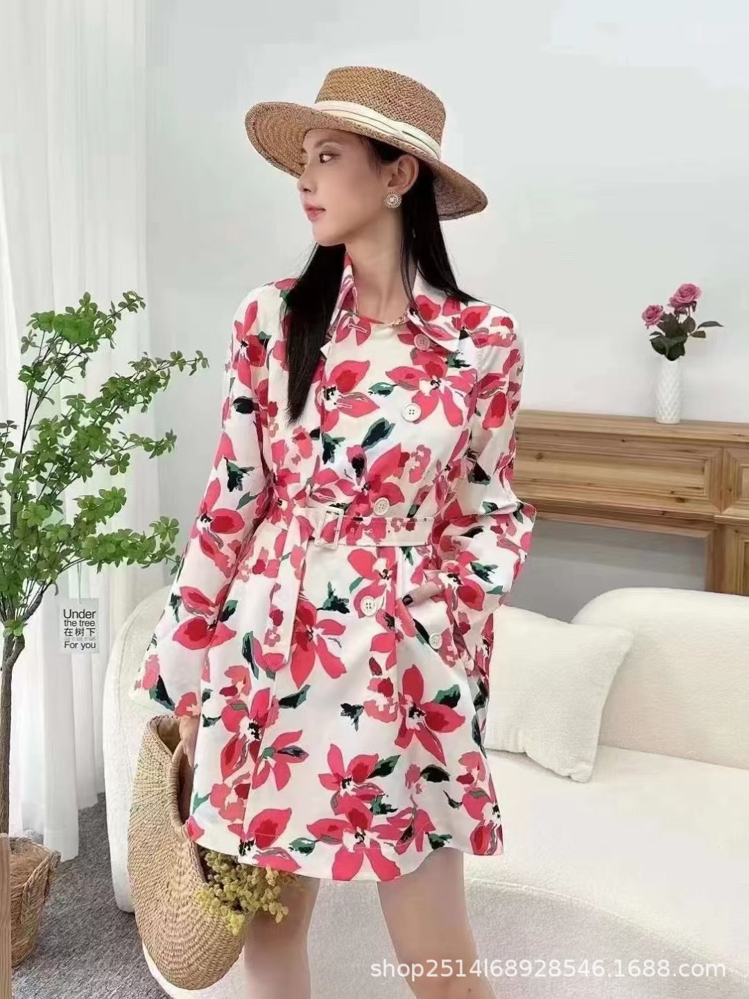 브라더의 새로운 여성 2023 가을 새로운 캐주얼 복고풍 우아한 기질 인쇄 긴 트렌치 코트 여성스토어 가기