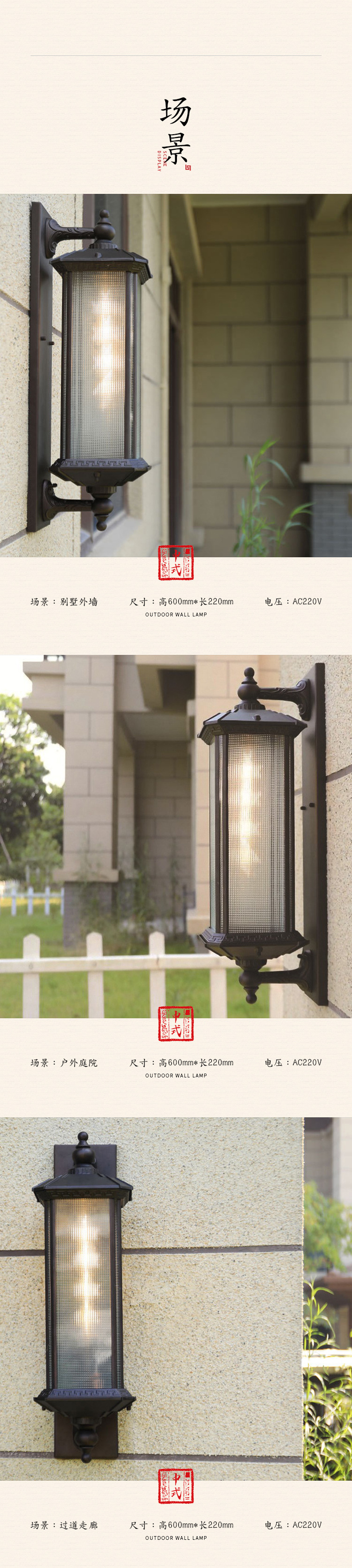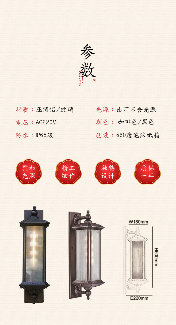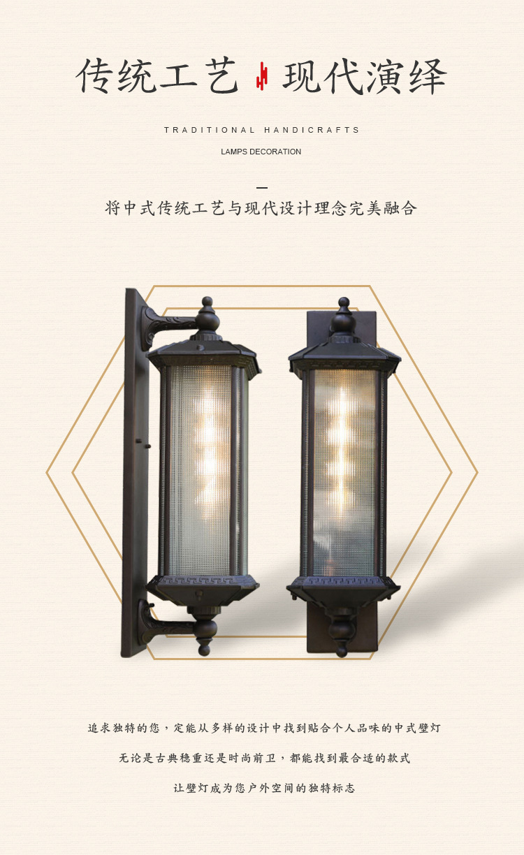 중국 복고풍 led 벽 램프 창조적 인 램프 새로운 방수 야외 테라스 램프 장식 조명 정원 램프 도매