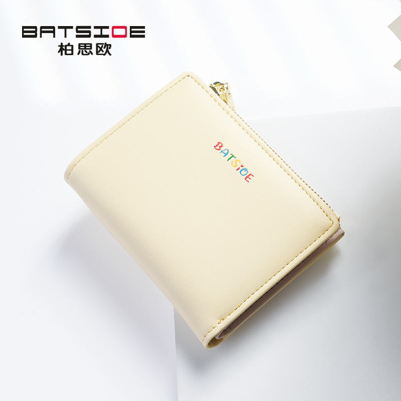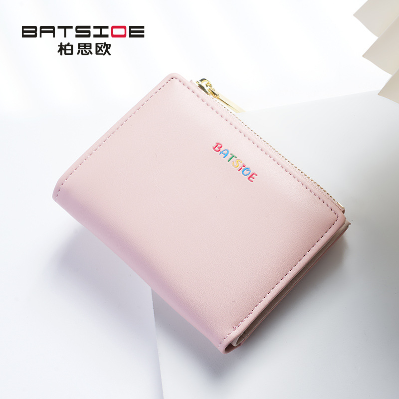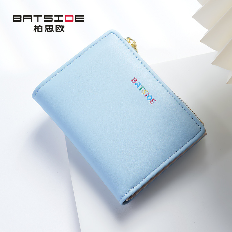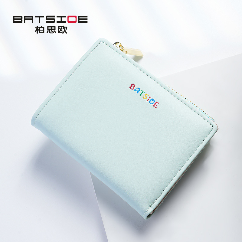 Baisiou 단색 짧은 여성 지갑 대외 무역 간단한 학생 가방 다채로운 로고 변경 카드 가방 휴대용 지갑