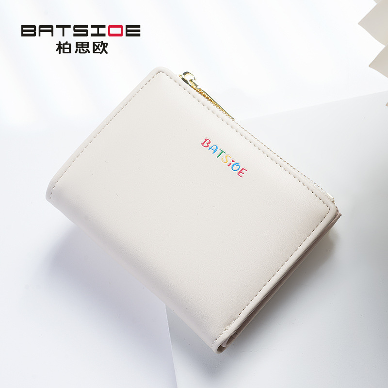 Baisiou 단색 짧은 여성 지갑 대외 무역 간단한 학생 가방 다채로운 로고 변경 카드 가방 휴대용 지갑스토어 가기