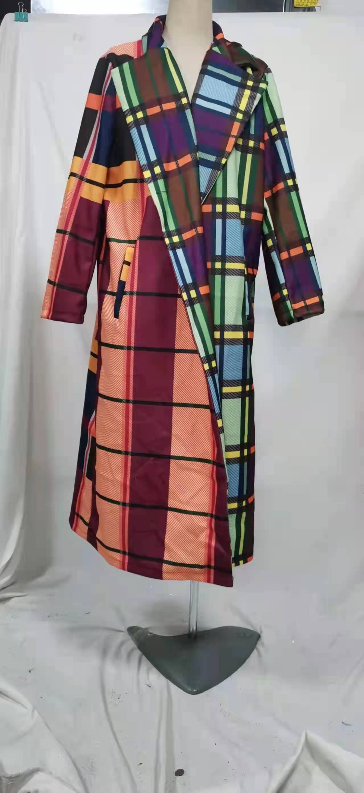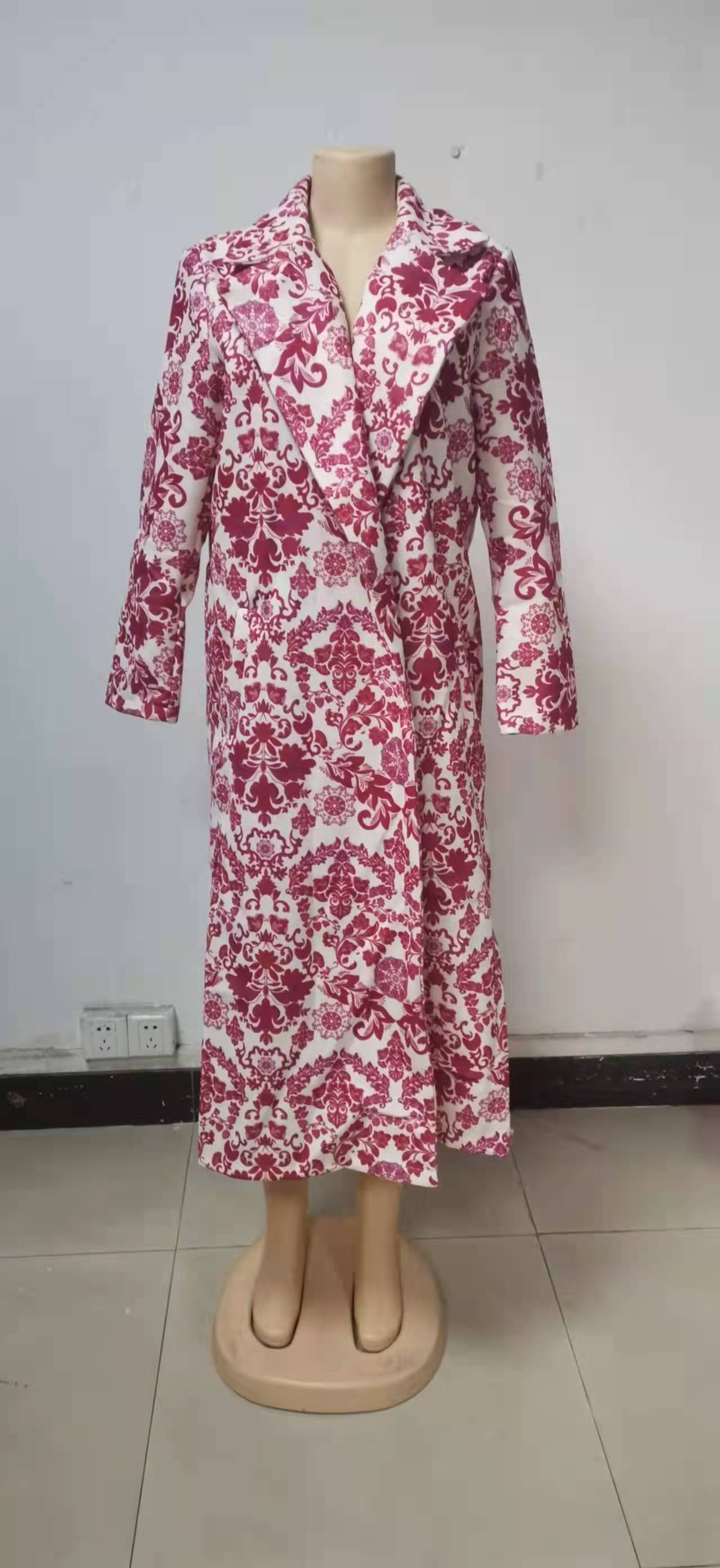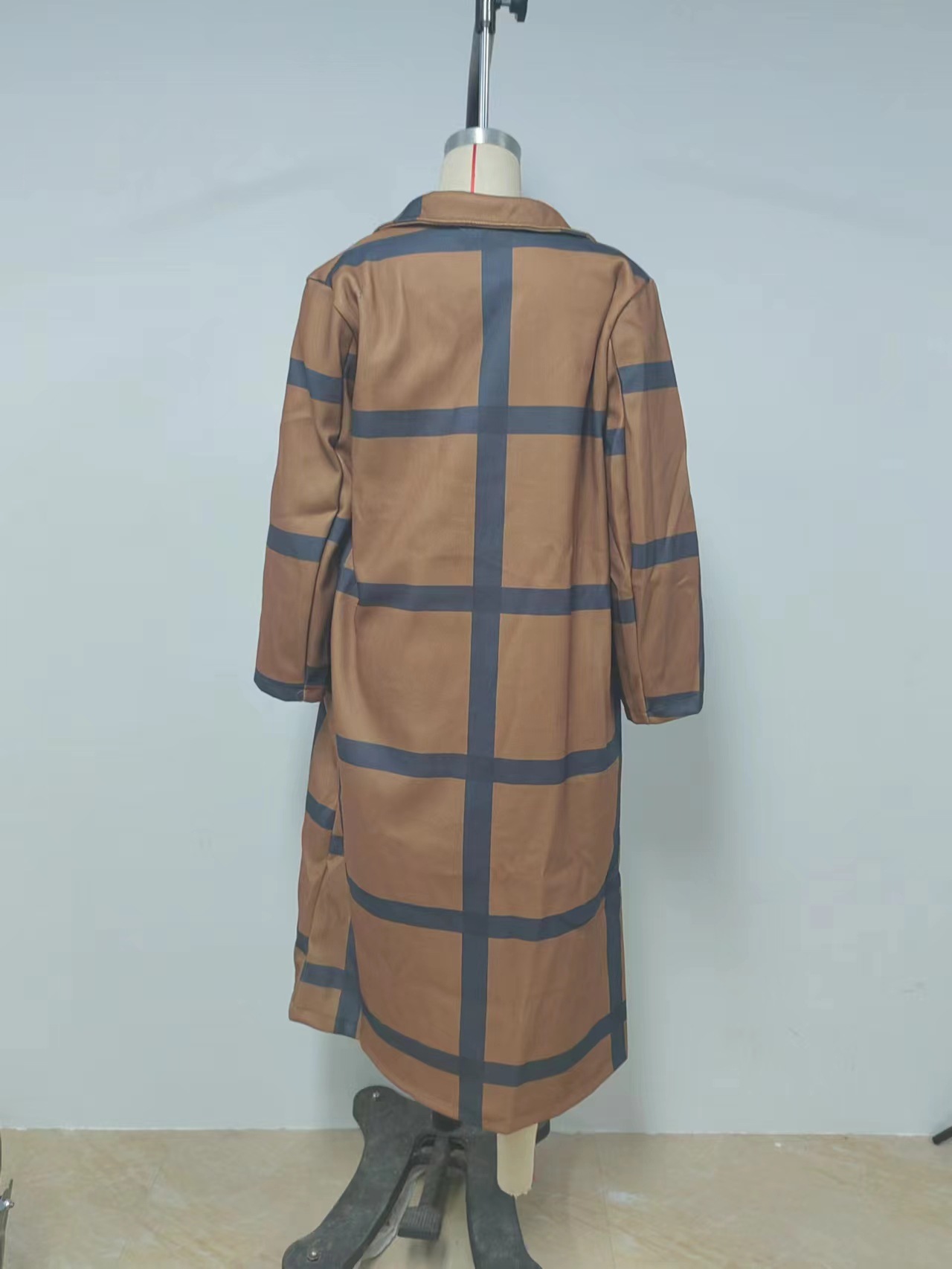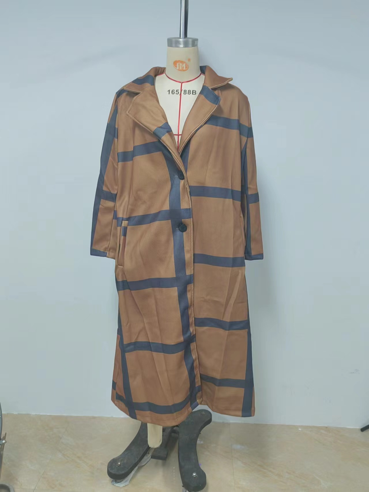 M8753 새로운 2025 유럽과 미국의 가을 국경 간 여성 의류 아마존 긴팔 라펠 코트 프린트 모직 롱 코트